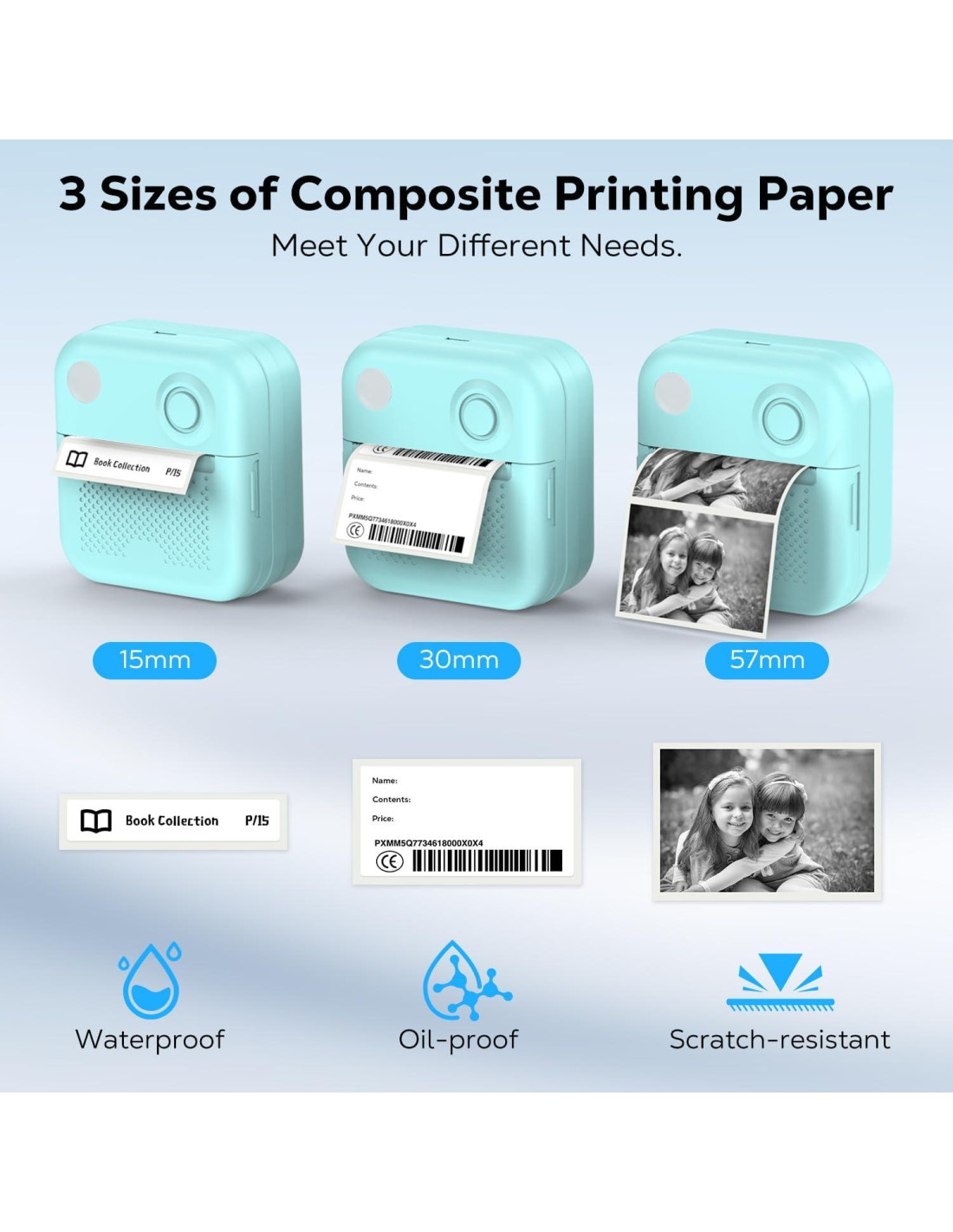 - Impresora de Etiquetas Mini con Ancho de Impresión Mejorado: Esta impresora de etiquetas térmica es ampliamente compatible y soporta papel de impresión de 15mm, 30mm y 57mm. Viene con 3 rollos de papel de impresión compuesto, resistente al agua, a prueba de aceite y a los arañazos, lo que puede garantizar una calidad de impresión superior. Nota: Un rollo para cada tamaño.