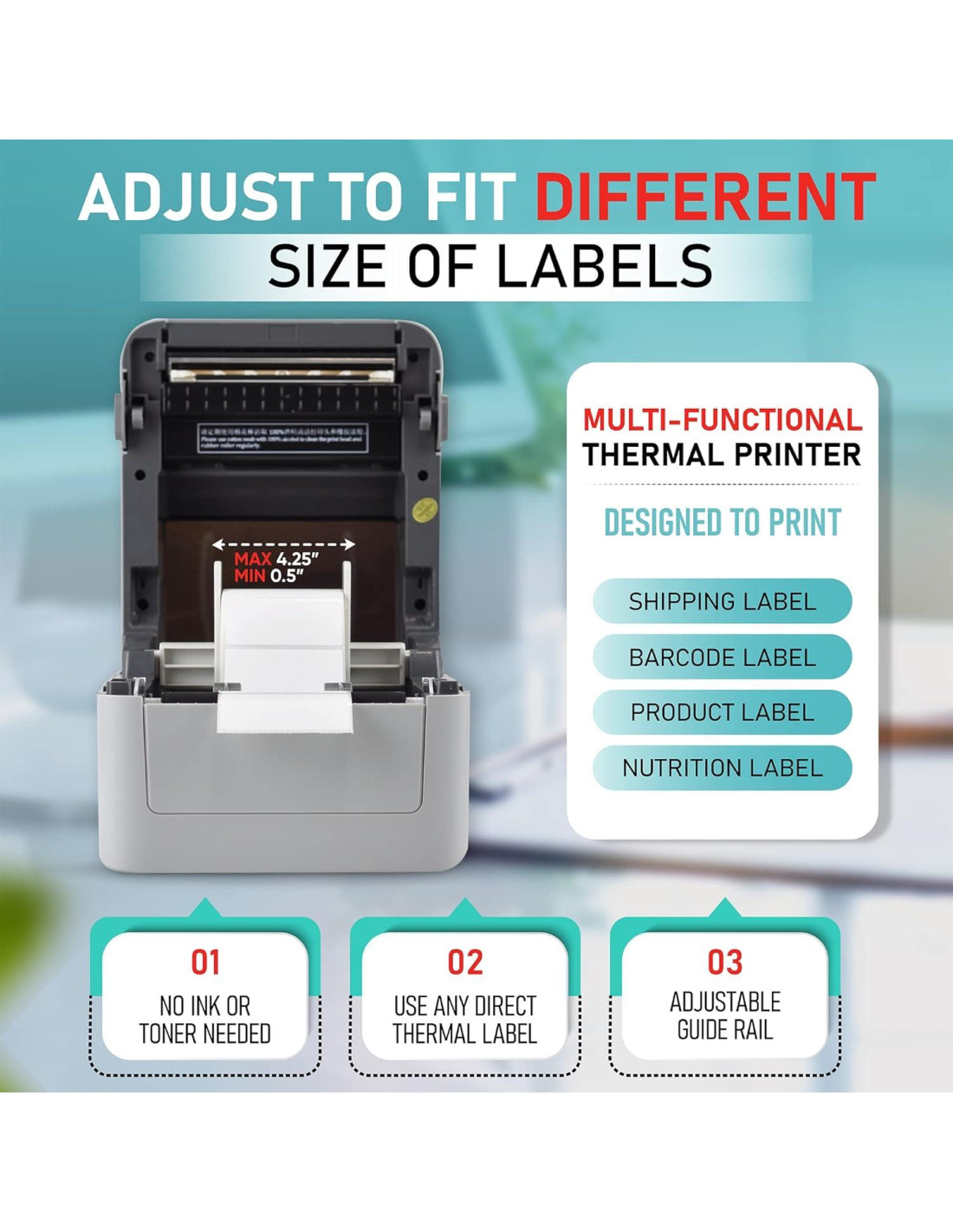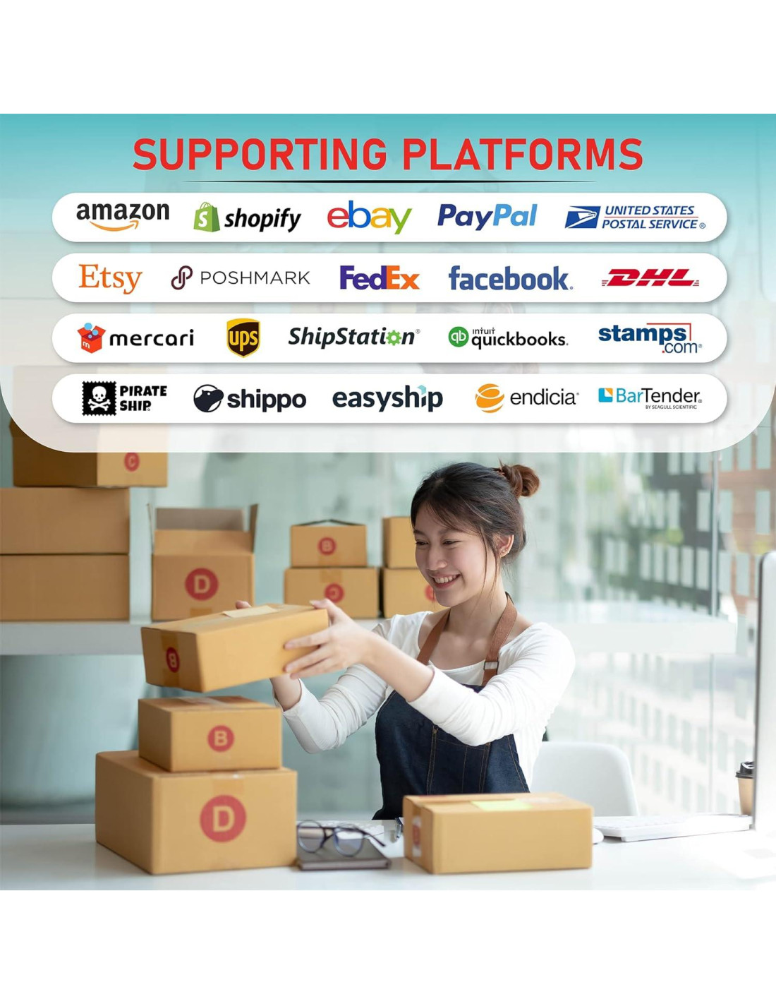 - Impresora de etiquetas de envío de alta velocidad para Windows, computadora Apple Mac / macOS, Chromebook / ChromeOS y Android a través de conexión USB, también soporta impresión por conexión inalámbrica Bluetooth para Android e iOS/iPhone/iPad. La tecnología térmica directa nunca requerirá recargar tóner de tinta. Soporta las etiquetas de Arkscan, etiquetas compatibles con Zebra y etiquetas compatibles con Arkscan. Todas las etiquetas de envío de UP y Fedex son compatibles. Las etiquetas de envío más comunes en tamaño 4x6 pulgadas (10.2x15.2 cm), 4x8.25 pulgadas (10.2x21 cm) y 4x6.75 pulgadas (10.2x17.1 cm) son compatibles.