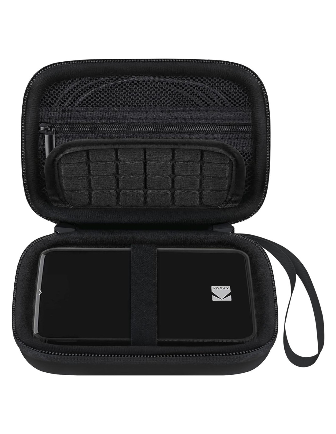 Esta funda de transporte para la impresora de fotos instantáneas Kodak Step tiene una correa de muñeca, proporciona múltiples formas de llevarla, conveniente para viajar con tu impresora móvil color mini Kodak Step.