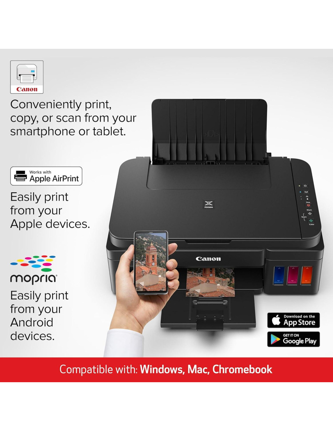 - IMPRESIÓN DESDE DISPOSITIVOS MÓVILES: Imprime desde tus dispositivos móviles compatibles usando la aplicación gratuita Canon PRINT.