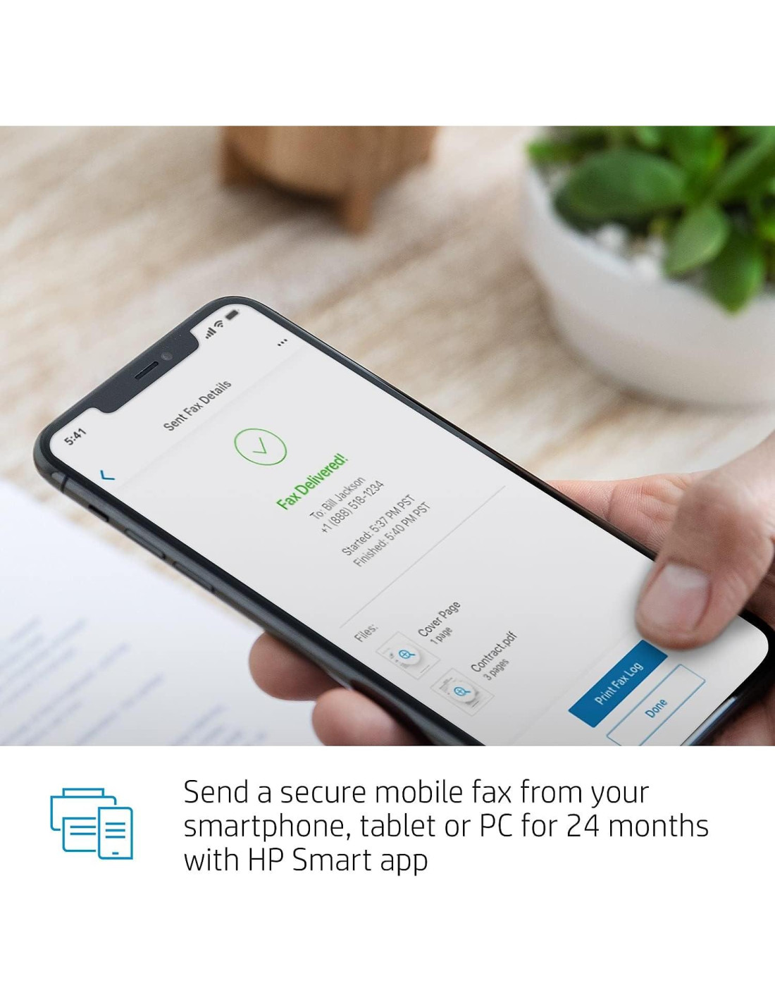 - Envía faxes móviles con la aplicación HP Smart: Enviar un fax debería ser tan simple como enviar un correo electrónico; esta impresora inalámbrica te permite enviar faxes sobre la marcha, directamente desde tu smartphone, tablet o PC durante 12 meses utilizando la aplicación HP Smart