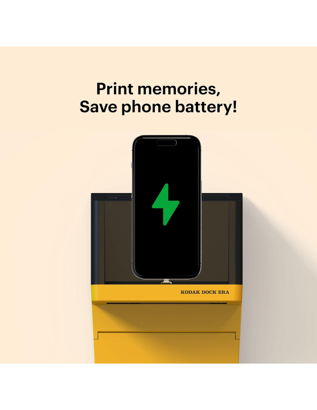 - Fácil de usar; Con la impresora de fotos Kodak Dock ERA Plus, puedes acoplar y cargar tu teléfono, imprimir tus fotos favoritas al instante y disfrutar de la comodidad de usarla en casa, en la escuela o en cualquier lugar