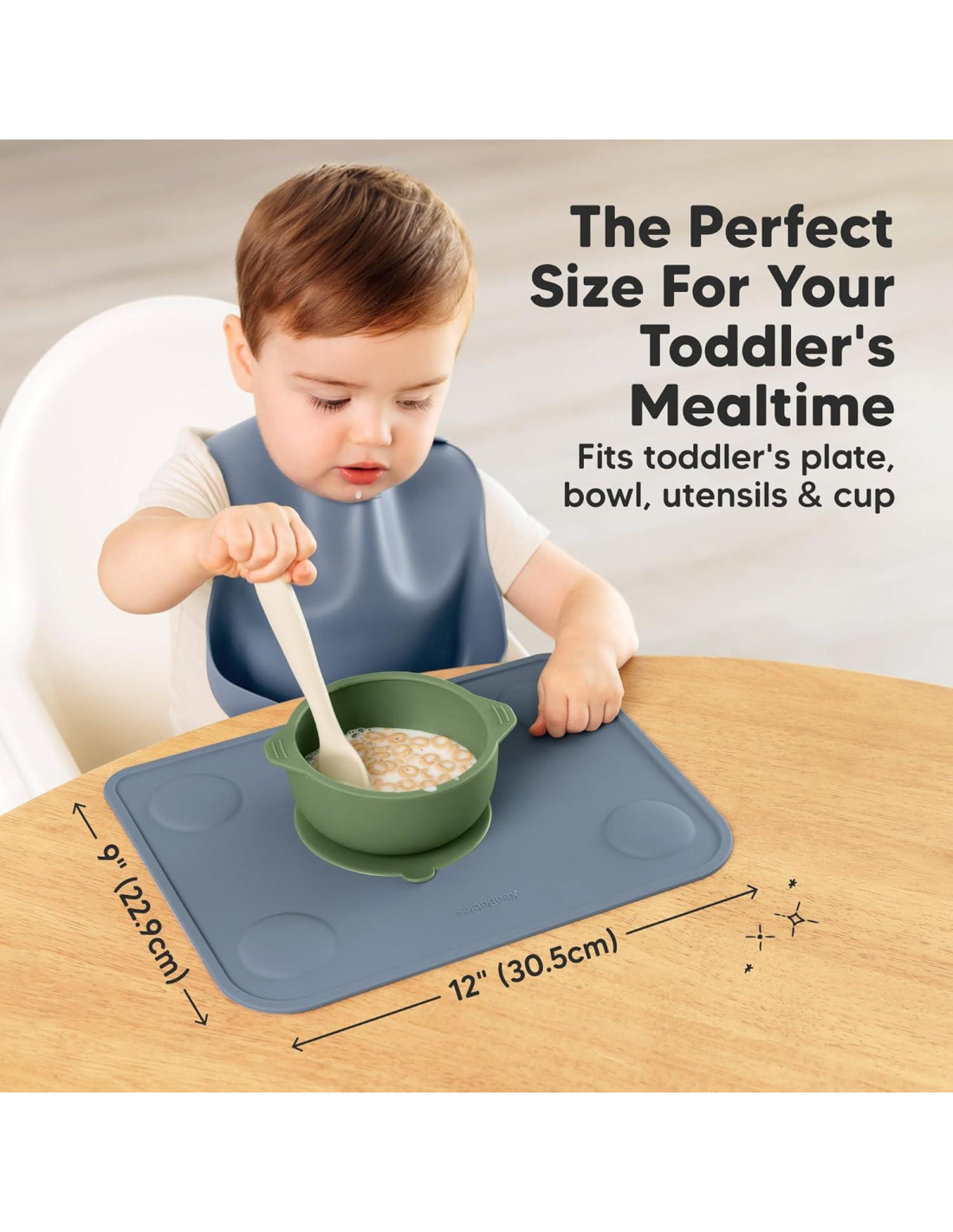- Fácil de Limpiar - Los bordes elevados de nuestros manteles de silicona para niños actúan como un atrapador de derrames y migas, haciendo que la limpieza sea rápida y sin complicaciones. Simplemente límpialos o pon estos manteles de silicona para bebés en el lavavajillas, ¡es así de simple!