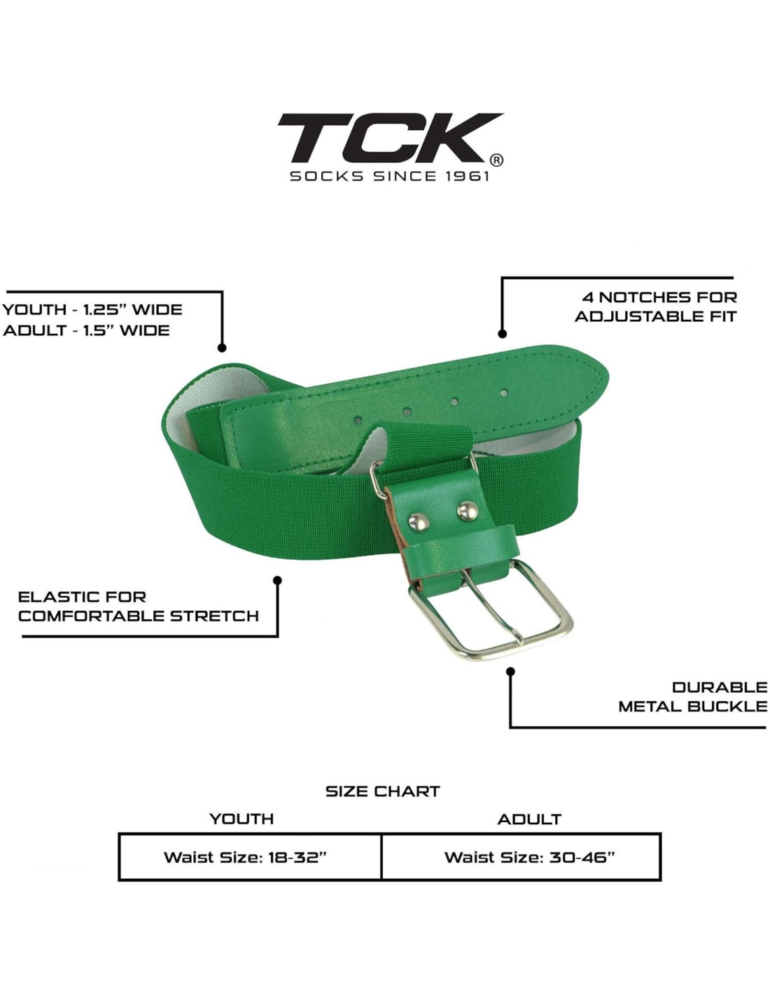 - MATERIALES DE RENDIMIENTO: El cinturón TCK está hecho de elástico, por lo que se estira fácilmente y cómodamente mientras está en el campo. Los calcetines a juego están hechos con 95% poliéster y 5% goma para proporcionar la máxima comodidad y durabilidad.
