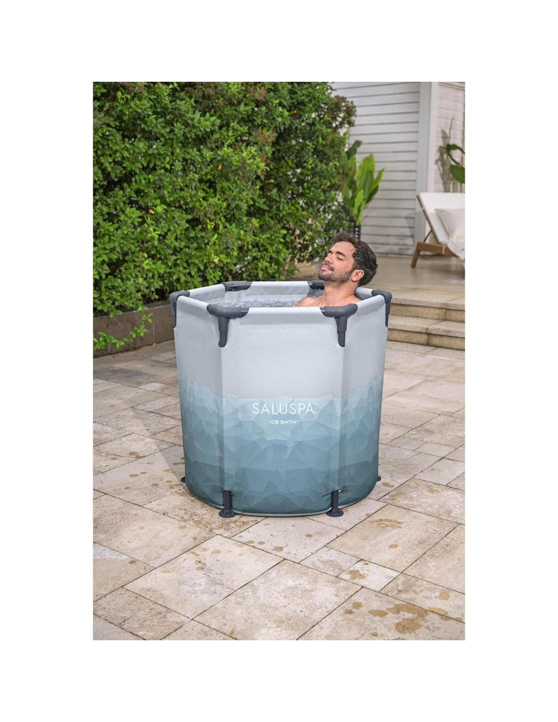 Sumerge tus pies en el mundo de la inmersión en frío con el SaluSpa Glacial Dip Bañera de Hielo. Sumérgete en el agua helada para refrescar y rejuvenecer tu cuerpo. Esta bañera de hielo portátil es ideal tanto para principiantes como para expertos con su diseño portátil y construcción duradera. ¡Restaura, rejuvenece y recarga! Un chapuzón en agua helada es una llamada de atención (sin cafeína) que invigorará tus sentidos. El agua helada ayuda a refrescar tu cuerpo y mente mientras te sumerges en la baja temperatura. La pared externa está construida con material Tritech de 3 capas, probado para ser resistente a pinchazos y daños. El marco de acero resistente a la corrosión proporciona fuerza y estabilidad, incluso con uso repetido. El revestimiento está construido con protección Polar-Shield para mantenerlo flexible, incluso en temperaturas frías. ¡Úsalo todo el año sin preocupaciones! El Glacial Dip viene con una tapa reforzada diseñada para mantener el frío cuando no está en uso y evitar que el polvo y los desechos se acumulen en el agua. Un enfriador y hielo no están incluidos con este conjunto.
