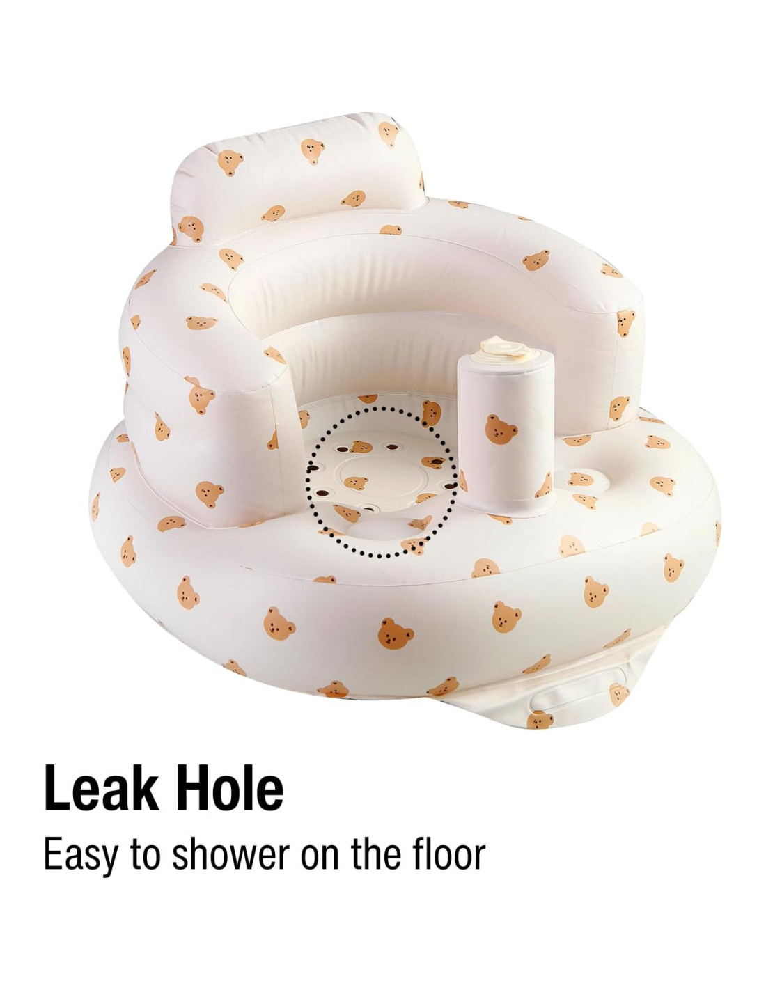 Asiento Inflable para Bebés PandaEar, diseñado para infantes de 3 meses en adelante. Esta silla versátil cuenta con una bomba de aire incorporada, que permite una inflación sin esfuerzo en solo 3 minutos con un simple movimiento de presionar hacia abajo, y un diseño a prueba de fugas asegura que no se escape aire durante su uso. Fabricado con PVC no tóxico de primera calidad, el asiento es amigable con la piel y duradero, ofreciendo un ambiente seguro para su bebé. El gran respaldo curvado proporciona un soporte robusto para la columna vertebral de su bebé, ayudándoles a sentarse cómodamente. Su diseño ergonómico y envolvente imita el abrazo de un padre, con airbags adicionales en la parte posterior para una protección mejorada. El asiento PandaEar es perfecto para diversas actividades como sentarse, alimentarse, jugar y contar historias, y se puede usar tanto en interiores como en exteriores - en el suelo, cama, baño, césped o playa. Cuando está desinflado, se pliega de manera compacta, lo que lo hace ideal para viajar, acampar o salir.