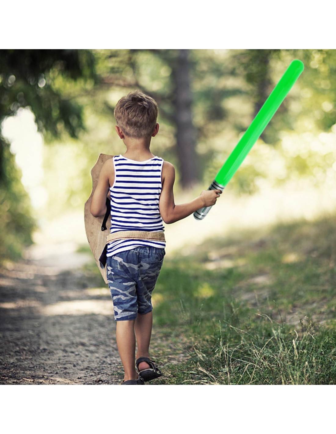 - Dimensiones de las Espadas de Luz: la espada inflable mide aproximadamente 34.5 inches (87,63 cm) de largo, 2 inches (5,08 cm) de ancho, y es adecuada para manos de niños y adultos.