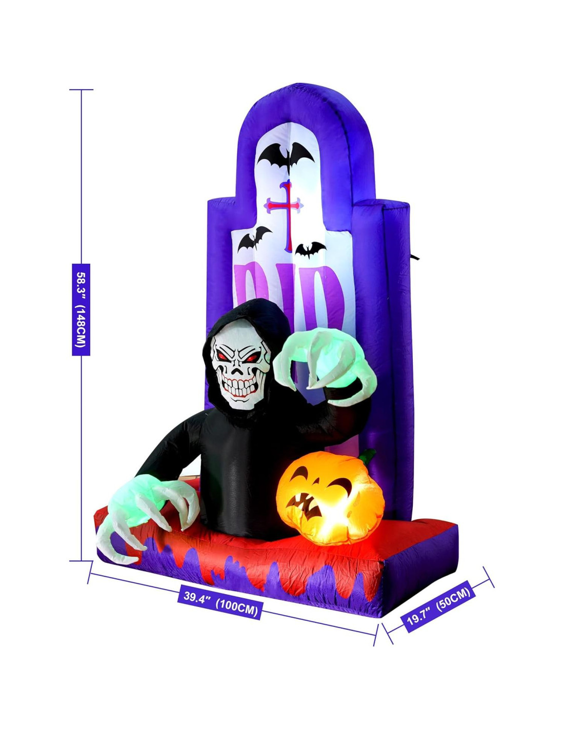 - Decoración de Halloween aterradoramente divertida: Esta decoración inflable de 4.8 pies presenta un diseño espeluznante de calabaza, lápidas y calavera que seguramente deleitará y asustará a tus vecinos, invitados a la fiesta y niños que piden dulces. Los inflables de Halloween se utilizan ampliamente en interiores, exteriores, balcones, jardines, decoración de porches o fiestas.
