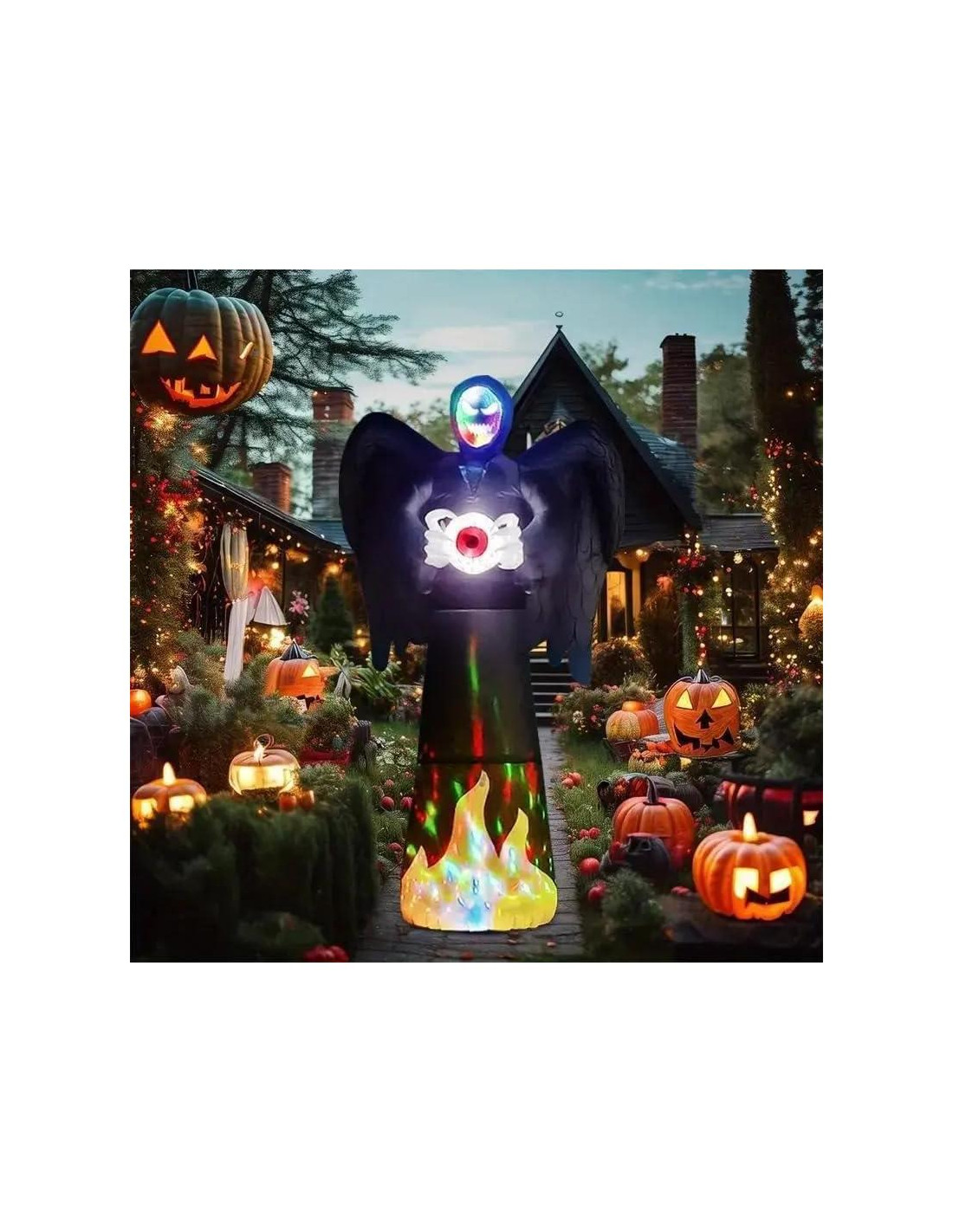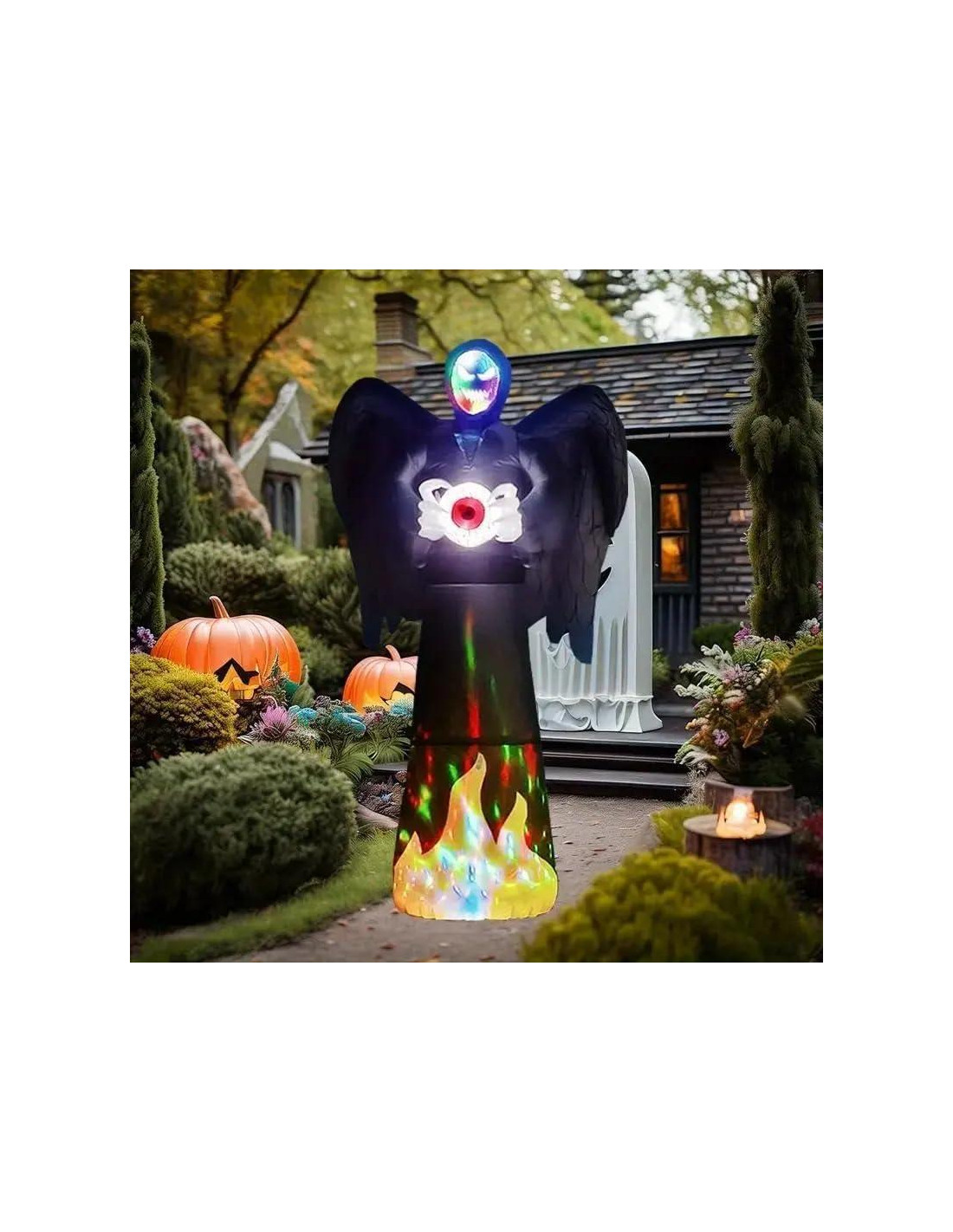 ¡Aporta una atmósfera espeluznante y festiva a tus celebraciones de Halloween con este molde inflable de 2.44m! Las luces LED integradas y la máscara de luz RGB crean un resplandor inquietante pero cautivador, perfecto para ambientar. Con un diseño amenazante de ángel negro con alas y un rostro fantasmal, esta decoración exterior seguramente será el centro de atención. Diseñado para durabilidad, es adecuado para fiestas de eventos, exhibiciones en centros comerciales o tu propio patio. Fácil de inflar y desinflar para un almacenamiento conveniente. Eleva tu decoración de Halloween con esta escultura inflable llamativa e imponente.