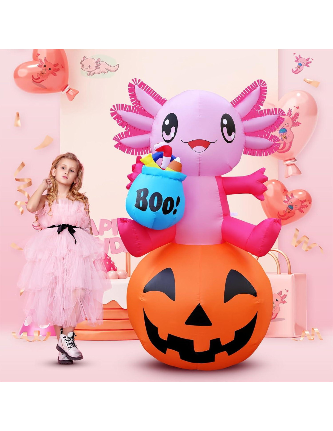 - Decoraciones de Halloween al aire libre de Axolote inflables, que miden 5.25 pies (1.6 metros) de altura y 3.28 pies (1 metro) de ancho. Inflables de Halloween con elementos de Halloween, como calabazas inflables. Nuestra decoración inflable de Halloween al aire libre con diseño novedoso y elementos de Halloween enriquecedores creará un efecto decorativo glorioso.