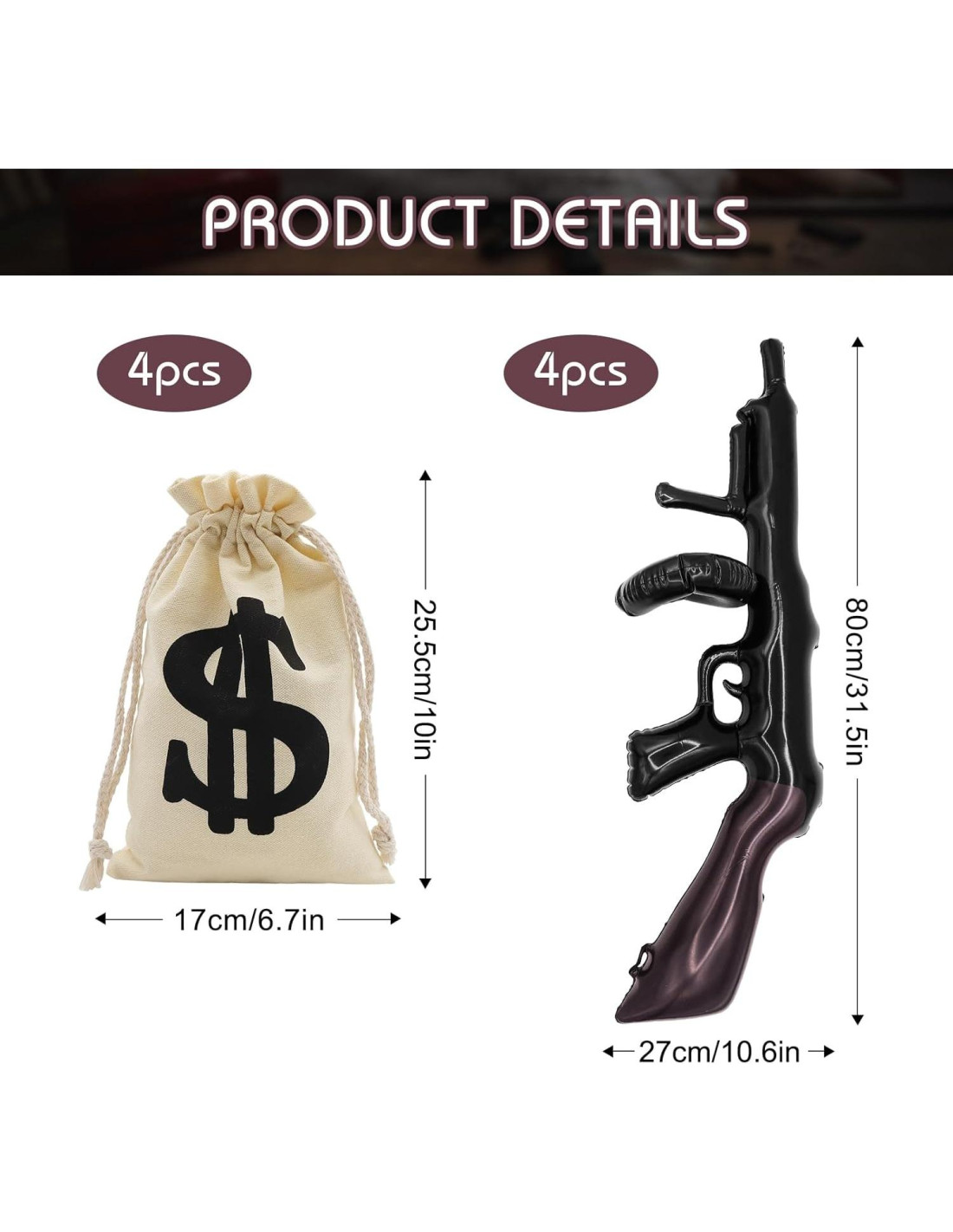 - Amplias Aplicaciones - El juego de armas de juguete inflables y bolsas de dinero es ideal para fiestas de cumpleaños, fiestas de graduación, actividades de juego de roles, cosplay escolar, fiestas temáticas de cosplay, fiestas de los años 20, fiestas de gánster de los años 1920, fiestas de Halloween, etc.