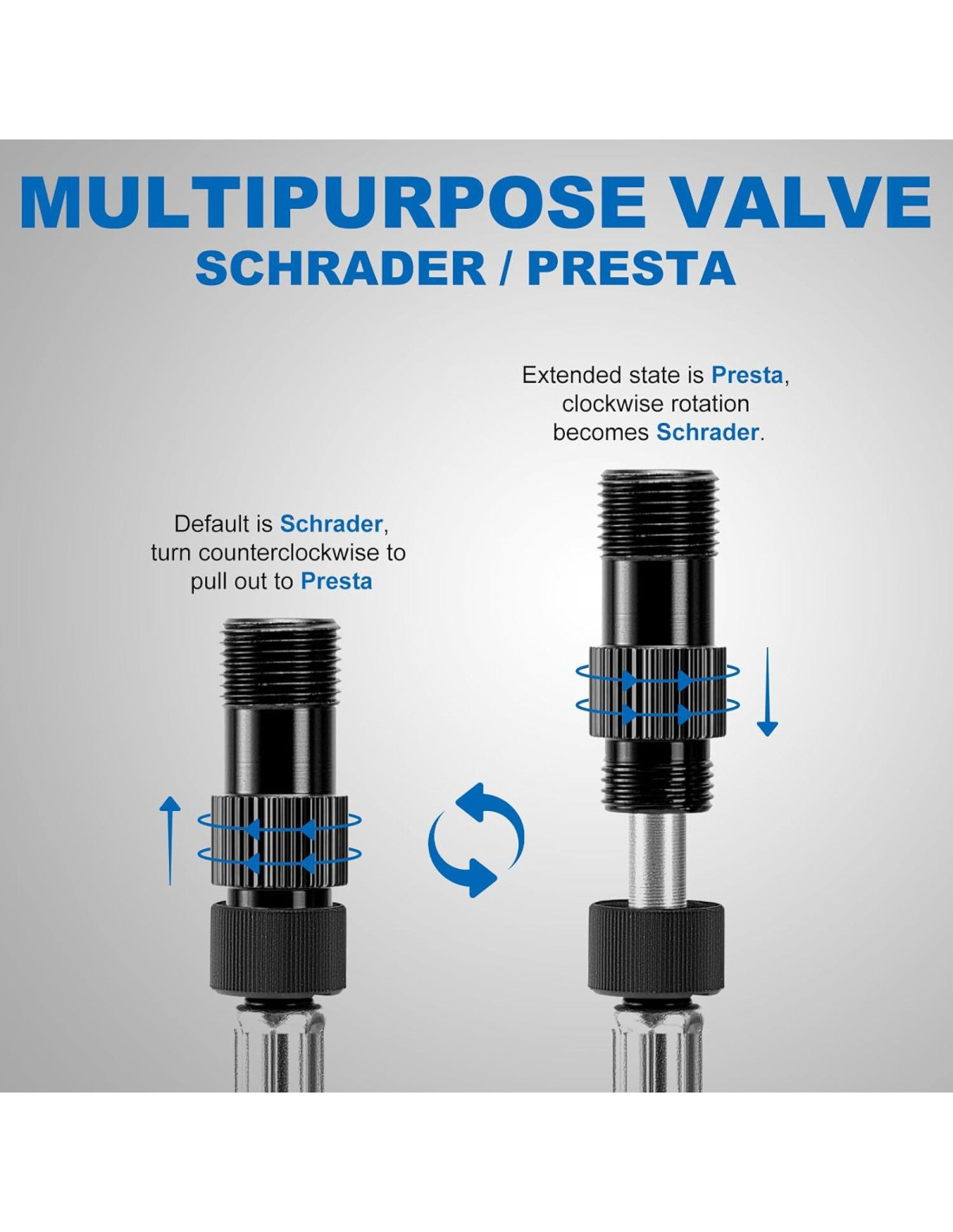 - Compatibilidad con Válvulas Múltiples: Compatible con Presta (FV), Schrader (AV), no se necesitan adaptadores adicionales, fácil de usar. También es adecuada para inflar horquillas, proporcionando un soporte integral para el mantenimiento de bicicletas.