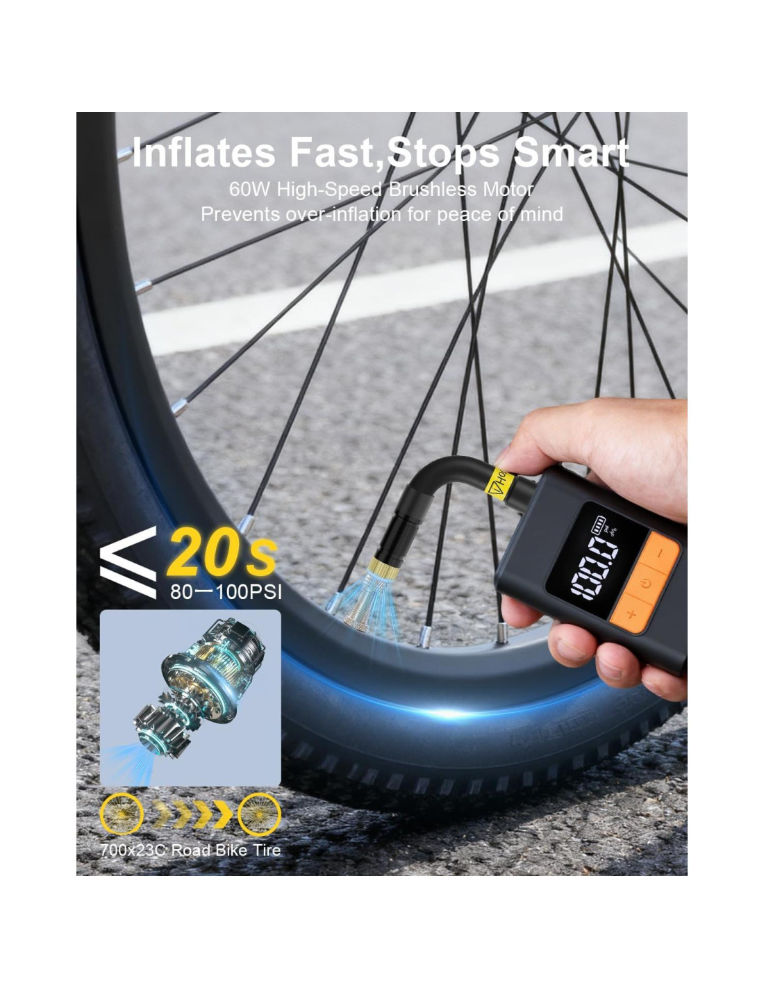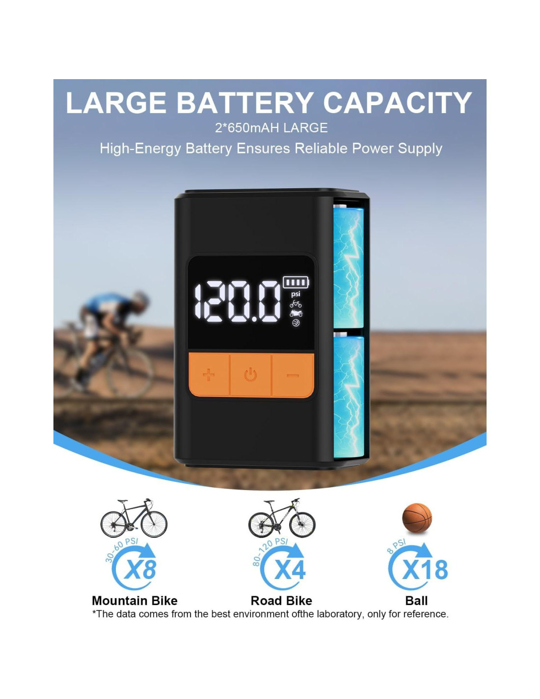 - APAGADO AUTOMÁTICO: La mini bomba de bicicleta está equipada con un sensor de presión de alta precisión y un chip inteligente, con una precisión de +/-1 PSI. Ofrece tres modos comúnmente utilizados para bicicletas, motocicletas y balones de baloncesto. Cuando se alcanza el PSI preestablecido, se apaga automáticamente para evitar sobreinflado.