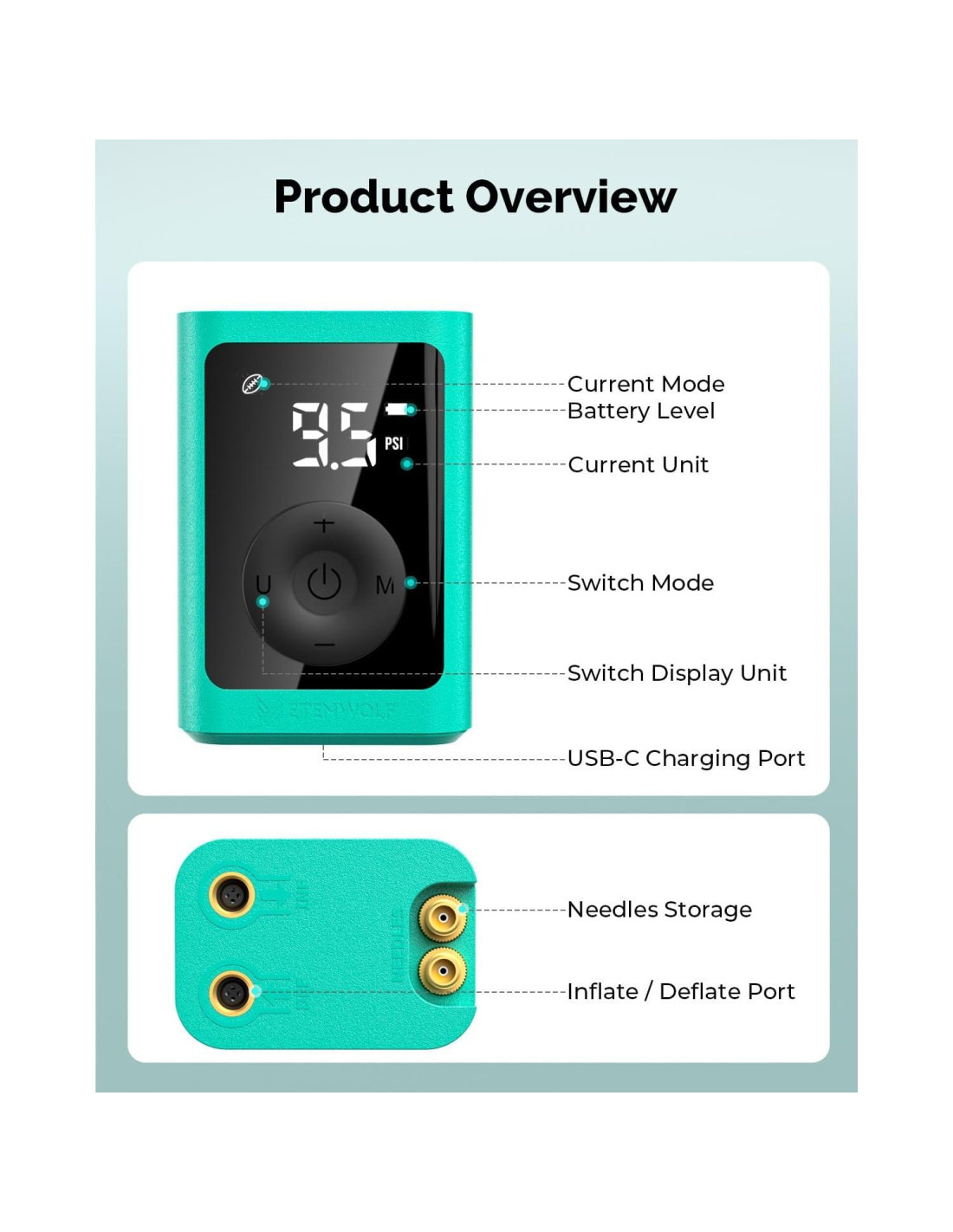 - PRECISO: Equipado con un sensor de presión altamente sensible, la bomba de aire ETENWOLF puede detectar la presión actual del balón y alcanzar la presión objetivo exacta que establezcas (más-menos 0.3 psi)