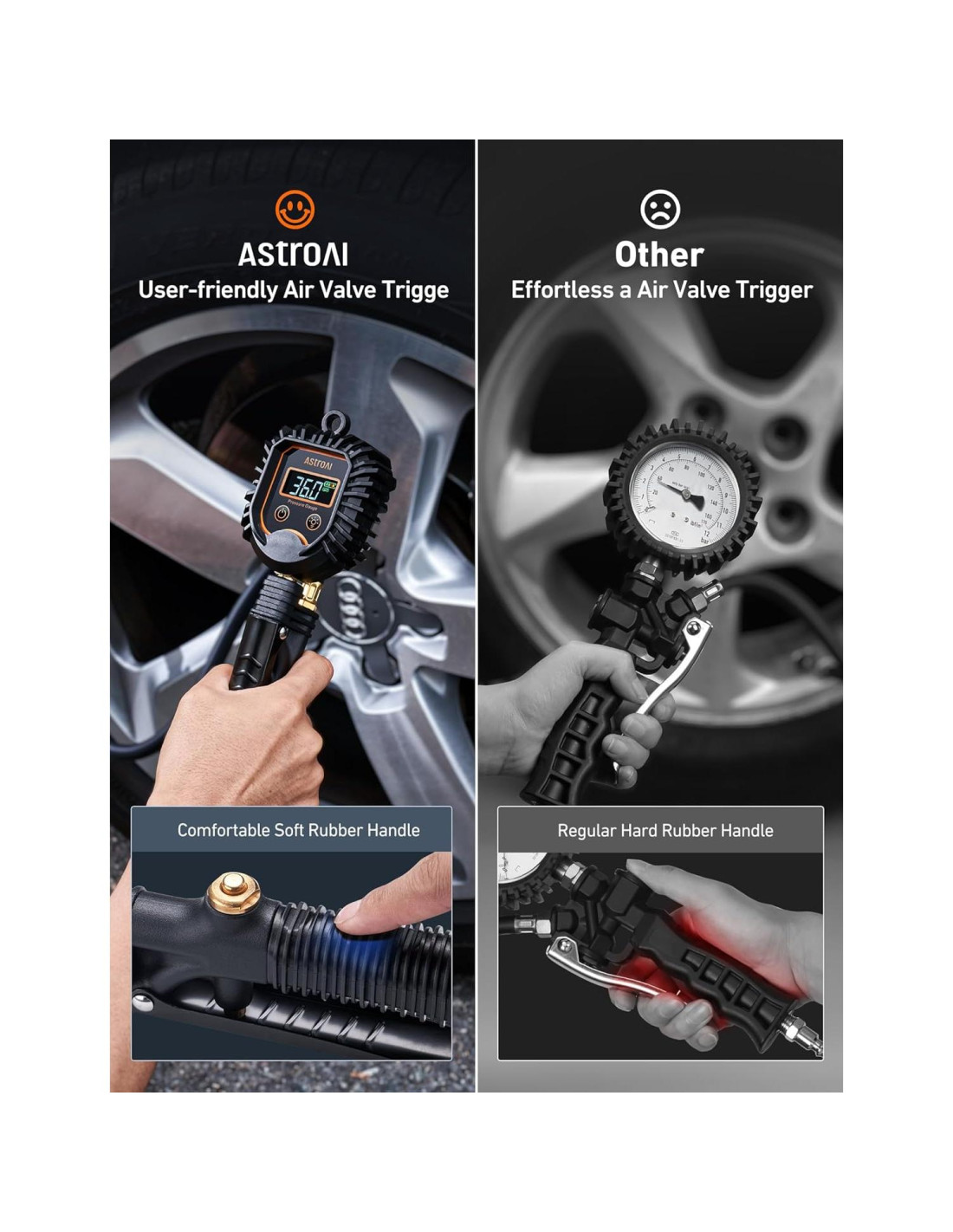 - Empuñadura de goma suave mejorada y protector de boquilla de aire añadido para mayor comodidad