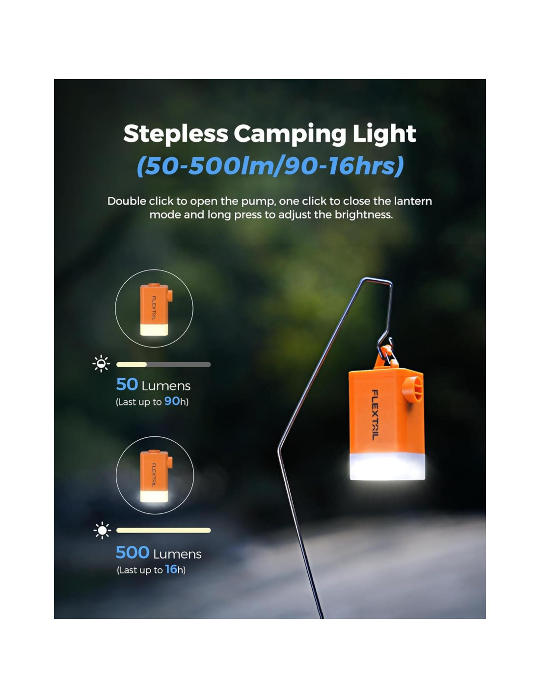 - [FUNCIÓN DE LUZ DE CAMPING] La bomba de aire portátil tiene una función de atenuación continua de 20lm a 200lm. Perfecta para tiendas de campaña, paseos a la luz de la luna, cortes de energía repentinos, ¡esta es su luz para todas las estaciones!