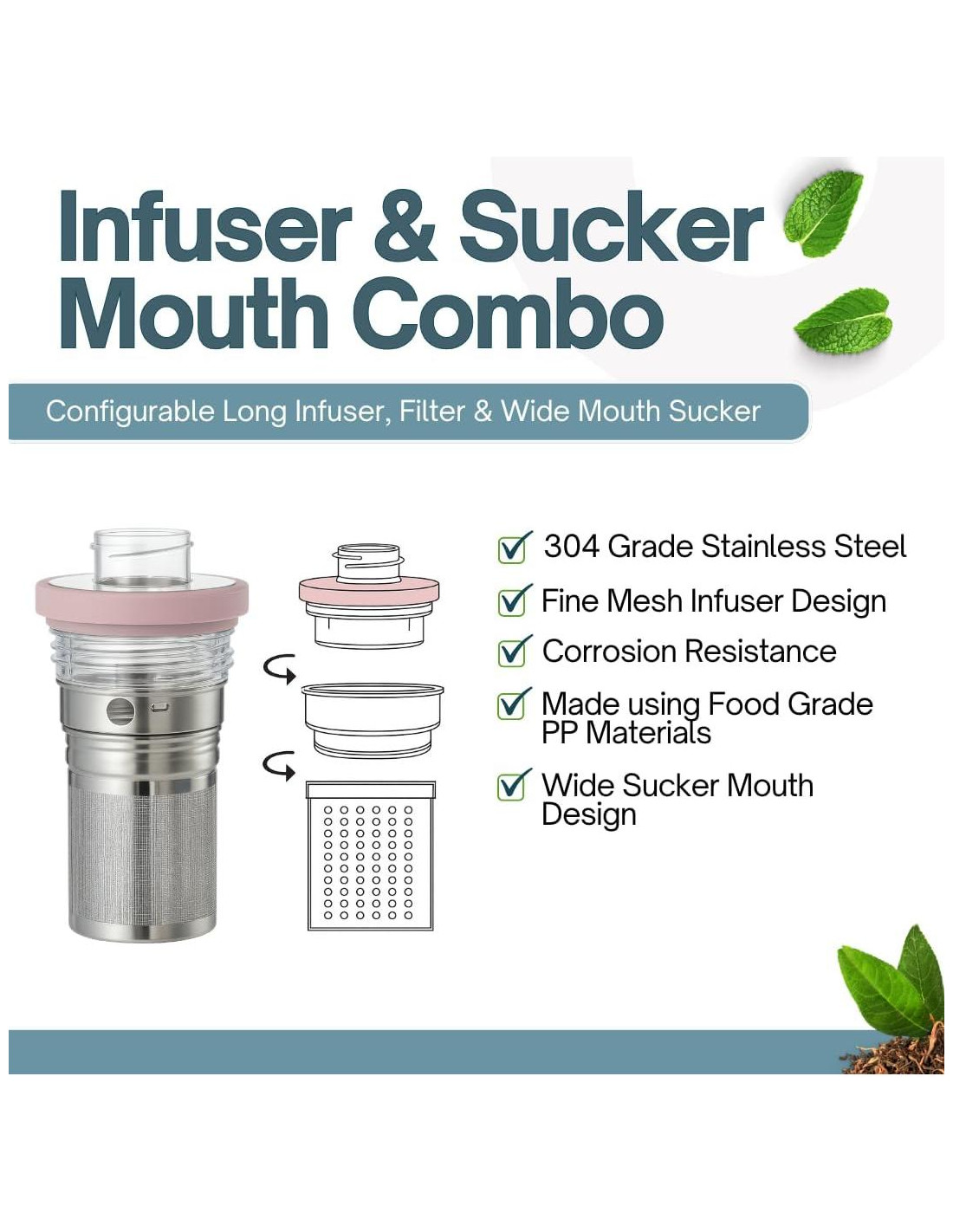 - INFUSOR Y FILTRO DE TÉ DE HOJA SUELTA - Esta botella infusora de té viene con un infusor / filtro de malla fina de grado 304. Úsalo para preparar café, té o crear bebidas infusionadas con frutas dondequiera que vayas. Retira el filtro / infusor para usarlo como botella de agua.