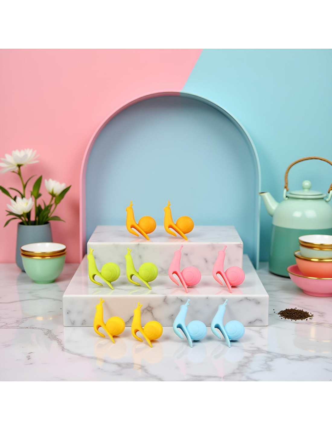 - CONTENIDO DEL PAQUETE: El conjunto incluye 10 adorables infusores de té de silicona en forma de caracol, perfectos para infusionar té de hojas sueltas en tazas y tazas