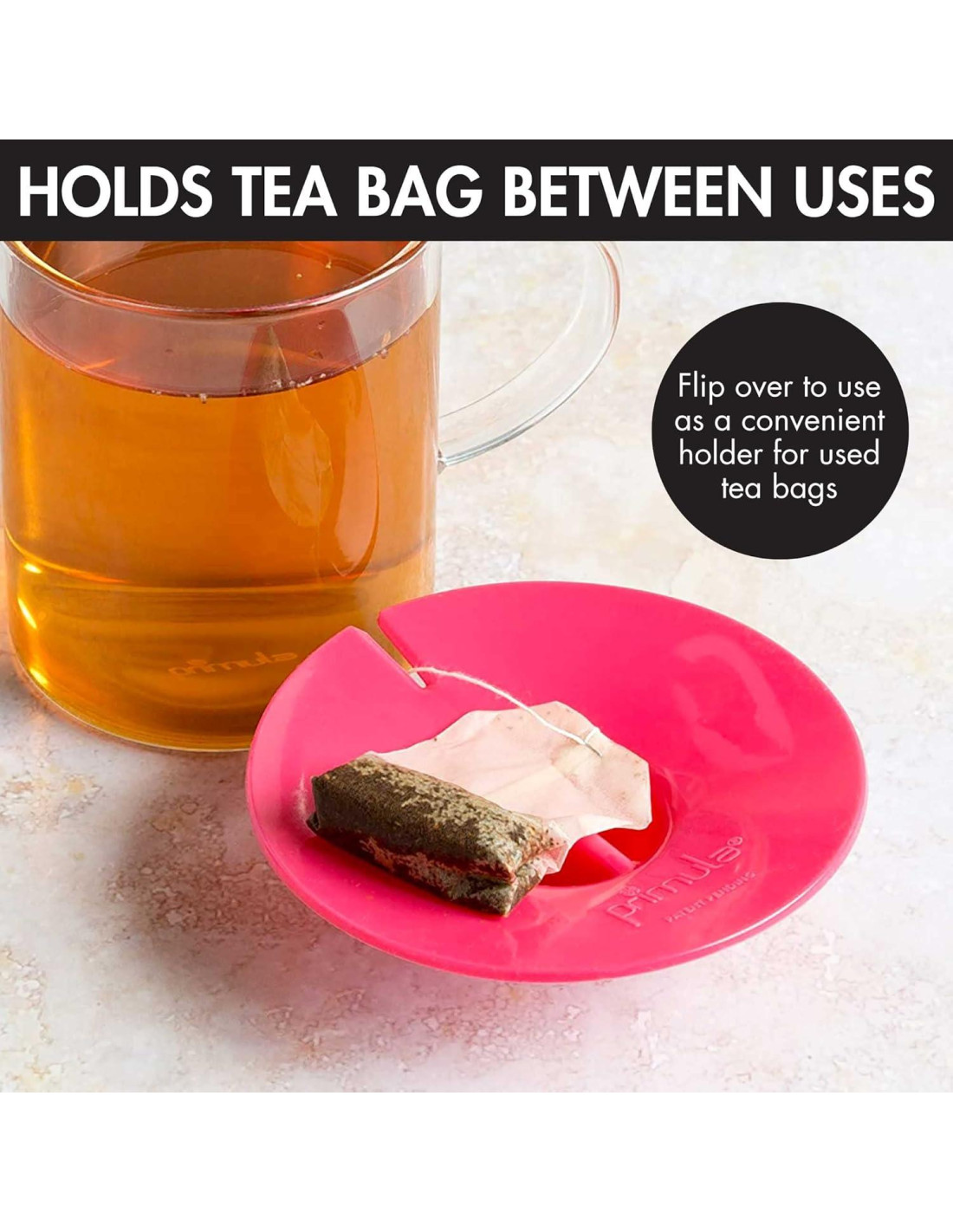 - DISEÑO INNOVADOR Cansado de envolver bolsas de té alrededor de una cuchara o de que sus cuerdas caigan en su taza de té recién preparado? El Amigo de Bolsa de Té Primula fue diseñado pensando en el ávido bebedor de té y puede adaptarse a una gran variedad de propósitos. Actúa como una tapa para mantener el vapor mientras su té se prepara, permite que infusione su bolsa de té sin que se caiga y le permite drenar limpiamente el líquido de la bolsa y sostiene su bolsa de té una vez que la ha retirado del vaso para que no gotee.