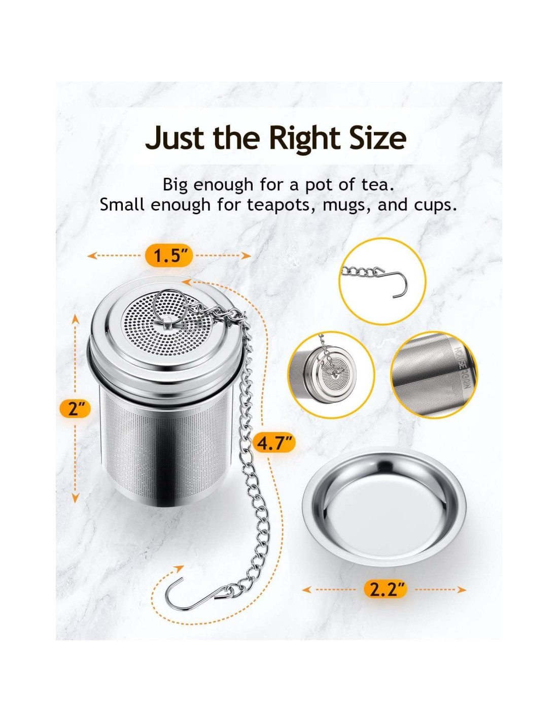- Materiales de Alta Calidad: Hecho de acero inoxidable de grado alimenticio 304, el infusor de té de hojas sueltas asegura que no haya sabor metálico en tu té o café y no es fácil de oxidar durante años de uso. Además, es más fácil de limpiar. Comparado con las bolsas de té desechables y los filtros de papel, el infusor de té ahorra dinero y es ecológico.