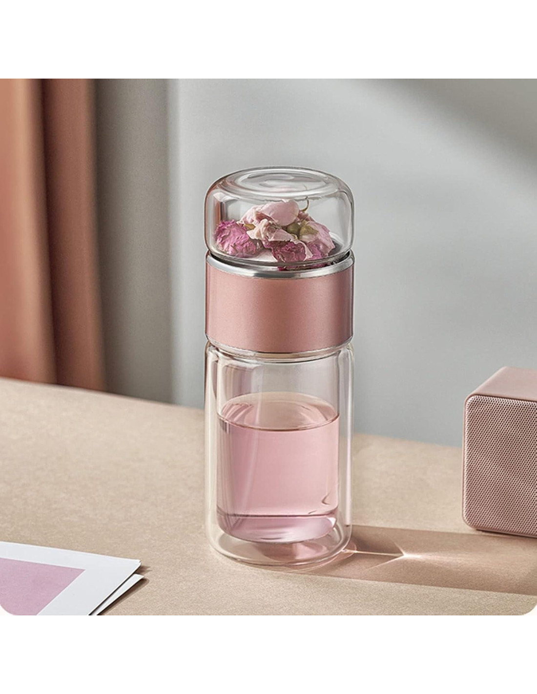 - Estilo Moderno: Botella de Té de Separación de Agua para Viajes con colores exquisitos y diseño de moda que le permite disfrutar de sus bebidas de té favoritas mientras está en movimiento con nuestra taza de té con infusor. La Botella de Té de Doble Vidrio mejorará la forma en que solía beber té caliente y helado, ¡y mejorará su estilo de vida! Tamaño -- 70mm x 70mm x 218mm, Capacidad de la botella superior -- 70ml, Capacidad de la botella inferior -- 350ml