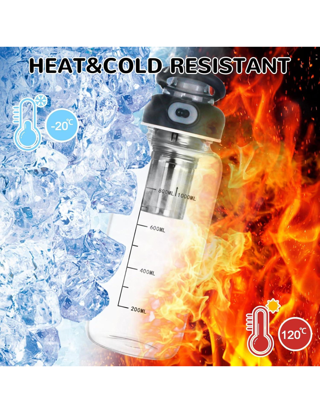 - Material de Alta Calidad: Hecha de vidrio borosilicato, esta botella de agua es libre de plomo y está construida para durar. Diseñada para resistir grietas y roturas, asegura un uso prolongado tanto para bebidas calientes como frías.