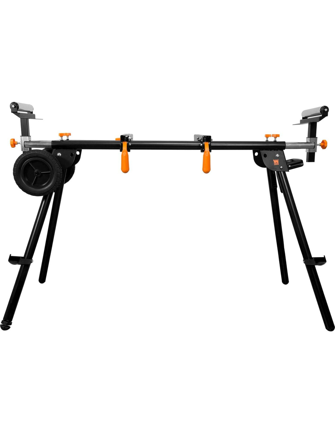 Recuerda cuando podías soportar adecuadamente tanto tu sierra ingletadora como tu pieza de trabajo? Con el Soporte de Sierra Ingletadora Rodante Plegable WEN, tendrás un sistema de soporte robusto y confiable para todas tus necesidades de corte. Tres salidas de 120V pre-montadas te proporcionan hasta 15 amperios de potencia, satisfaciendo las necesidades de sierras y herramientas de todos los tamaños. Dos ruedas de 8 pulgadas (20,32 cm) nunca planas se combinan con un diseño plegable para una solución de transporte y almacenamiento segura y fácil. Los brazos deslizantes se extienden desde 32 hasta 79 pulgadas (81,28 a 200,66 cm) de ancho, proporcionando soporte para tablas de hasta 10.5 pies (3,2 m) de largo. Los soportes de liberación rápida bloquean firmemente la sierra ingletadora en su lugar para una instalación y ajustes simples. El marco de acero de 1-1/2 pulgadas (3,81 cm) de diámetro proporciona más de 330 libras (149,68 kg) de soporte para tu sierra y materiales, mientras que el acabado en polvo previene la corrosión y el desgaste del cuerpo del soporte. Ajusta la altura de los rodillos desmontables para que coincidan mejor con los requisitos específicos de tu proyecto. Ambos rodillos también funcionan como paradas de trabajo, ayudando a realizar cortes consistentes y uniformes cada vez. El diseño universal permite la compatibilidad con la mayoría de las sierras ingletadoras en el mercado, incluyendo toda la serie de sierras ingletadoras WEN. Si quieres saber si tu sierra ingletadora en particular se ajustará al Soporte de Sierra Ingletadora Rodante WEN, simplemente mide la distancia entre los agujeros de montaje delantero y trasero. Si esta distancia es menor a 15 pulgadas (38,1 cm) y está en una línea central, el soporte encajará. Y porque es un producto WEN, tu soporte de sierra ingletadora viene respaldado por una garantía de dos años, una red nacional de técnicos de servicio calificados y una línea de ayuda al cliente amigable, todo para asegurarte de que recuerdes WEN.
