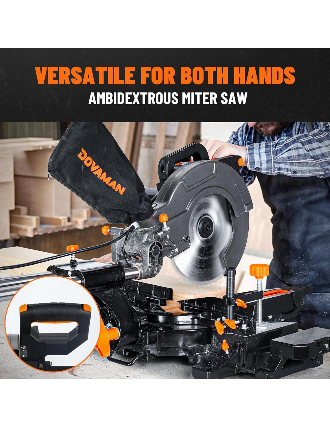 - Componentes incluidos: Manual del Usuario, Abrazadera de Soporte, 2 Cepillos de Carbón Extra, 3 Cuchillas TCT para Cortes de Materiales Múltiples, Sierra Ingletadora DOVAMAN DMS01A Mejorada de 10 Pulgadas