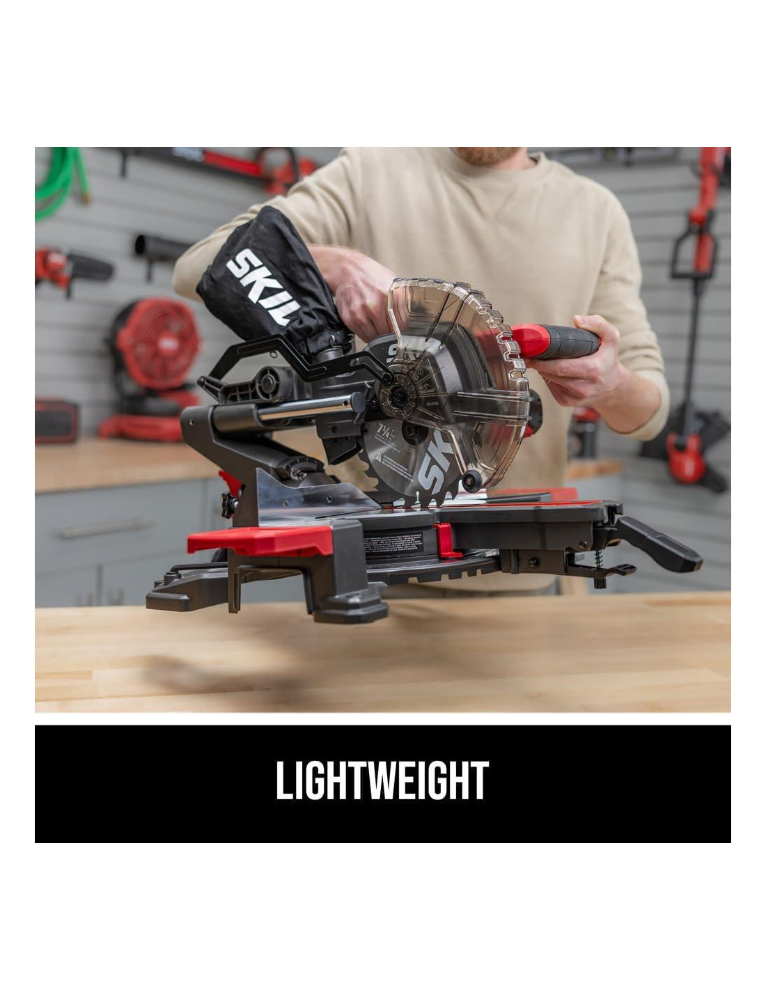 Realiza cortes precisos para zócalos, molduras y molduras de corona, o corta tablones para estanterías y bibliotecas utilizando la Sierra Ingletadora Deslizante de Un Solo Bisel SKIL de 10 Amp 7-1/4 Pulgadas. La sierra ingletadora cuenta con una línea de sombra LED que proporciona cortes con mayor precisión que los láseres. Su bloqueo de inglete rápido permite ajustes de ángulo de inglete rápidos y precisos, mientras que su motor de 10 amperios alcanza hasta 4,800 RPM para cortes rápidos y detallados. Esta sierra ingletadora de un solo bisel presenta un diseño liviano para un fácil transporte y almacenamiento, con un sistema de riel compacto que minimiza la huella de la sierra para cortes al ras contra las paredes. Su bisel único permite cortes de 0 a 45 grados a la izquierda, mientras que un rápido abrazadera de trabajo asegura rápidamente los materiales para un corte más seguro. La sierra ingletadora viene con una bolsa para polvo, llave Allen de doble extremo, abrazadera rápida y hoja de carburo de 7-1/4 pulgadas 24T.