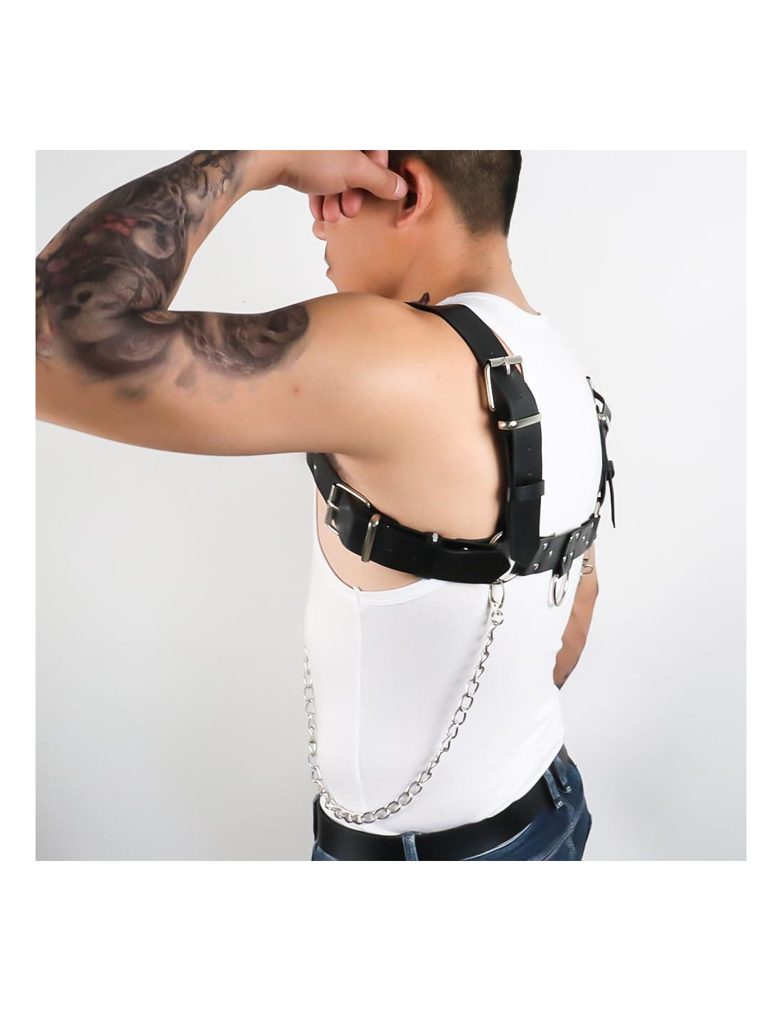 - [Arnés de pecho sexy - Listo para festivales y vida nocturna] Llama la atención en festivales y discotecas con este arnés de pecho sexy. La combinación de cuero y cadena crea un aspecto impactante, mientras que las correas ajustables aseguran un ajuste seguro. Ligero y fácil de usar, este arnés es el accesorio perfecto para fiestas, diseñado para realzar tu estética de arnés de exhibición muscular.