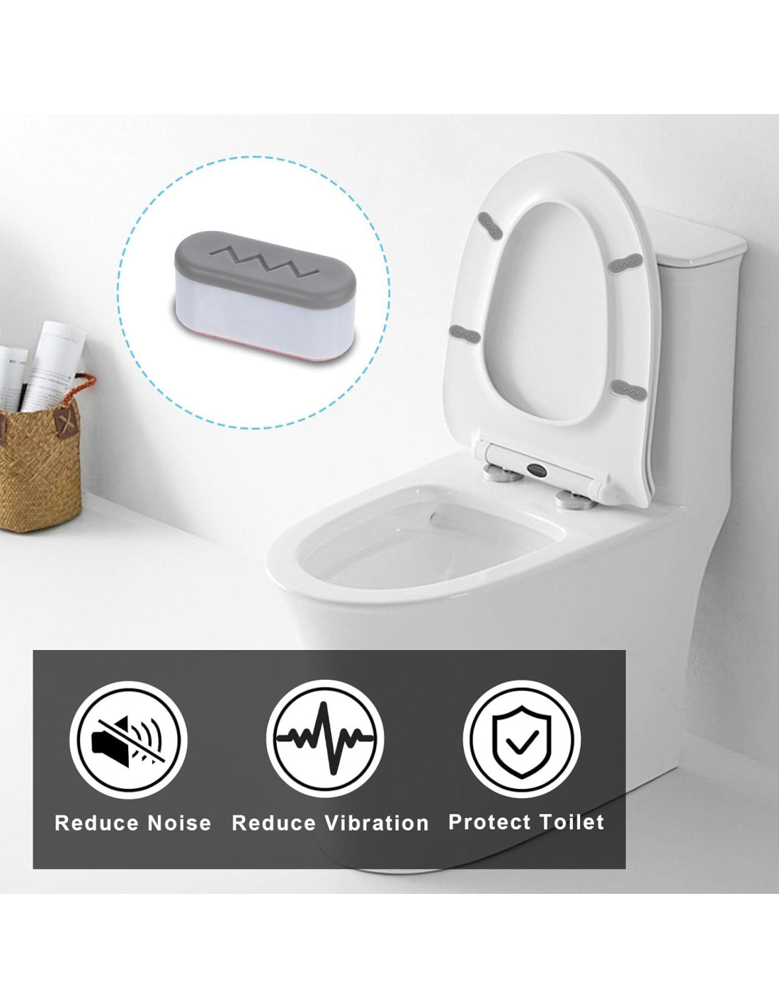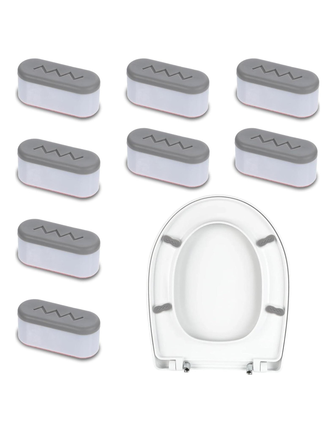 - [Ajuste Universal] Diseñados para adaptarse a la mayoría de los asientos de inodoro, estos amortiguadores de goma universales mejoran la estabilidad del asiento. Son adecuados para uso en casa, hotel y hospital y proporcionan una solución confiable para la conexión del asiento de inodoro con bidet.