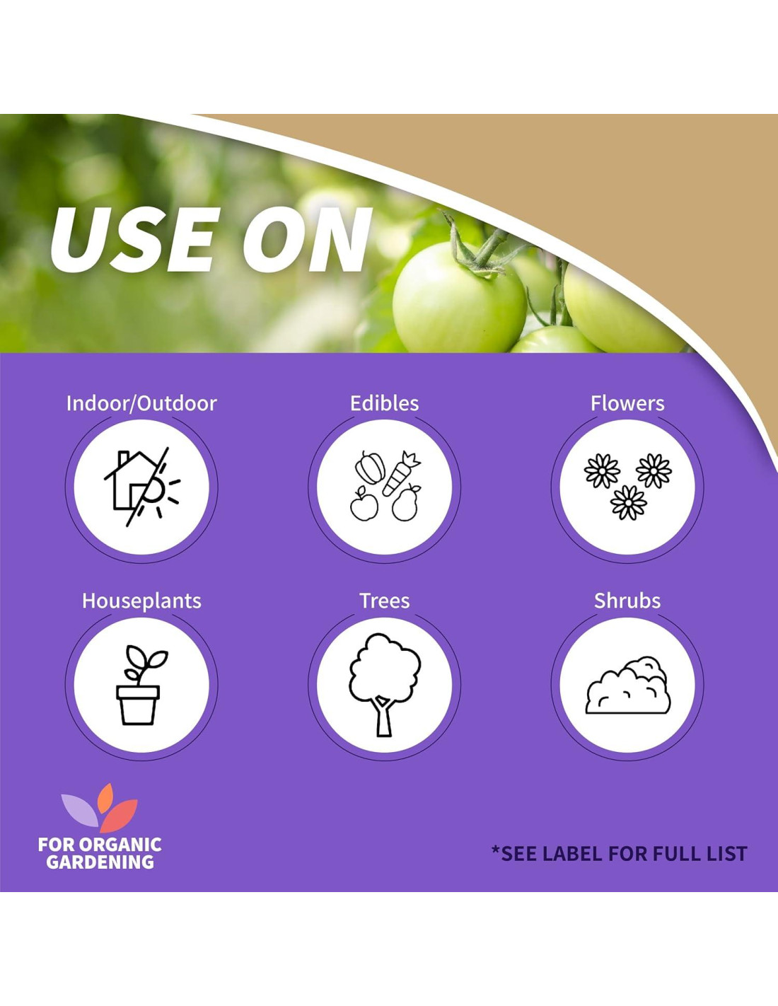 - JARDINERÍA ORGÁNICA - Derivado de la semilla de Neem, nuestro producto es excelente para usar en rosas, flores, verduras, frutas, hierbas, plantas de interior, árboles y arbustos. Está aprobado para jardinería orgánica.