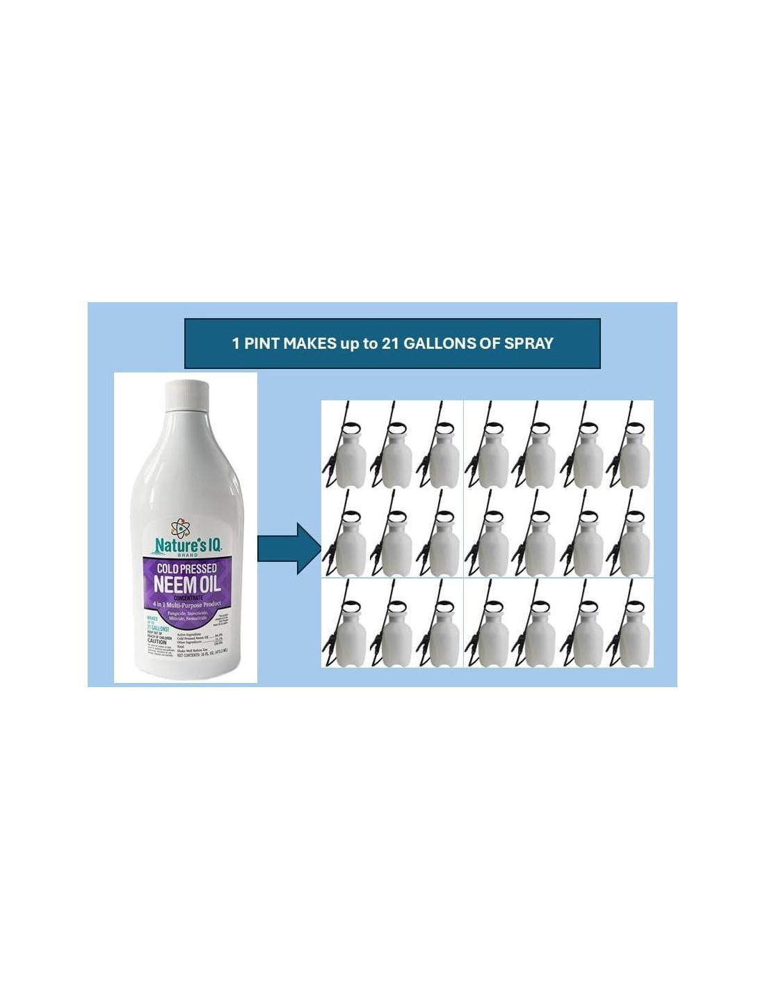 - SPRAY de Aceite de Neem FÓRMULA AVANZADA para plantas: Emulsionantes incorporados en la fórmula, solo agrega agua. Aceites 100% puros requieren un emulsionante para permitir que el aceite y el agua se mezclen. Nature's IQ ya lo tiene incorporado, así que solo agrega agua.