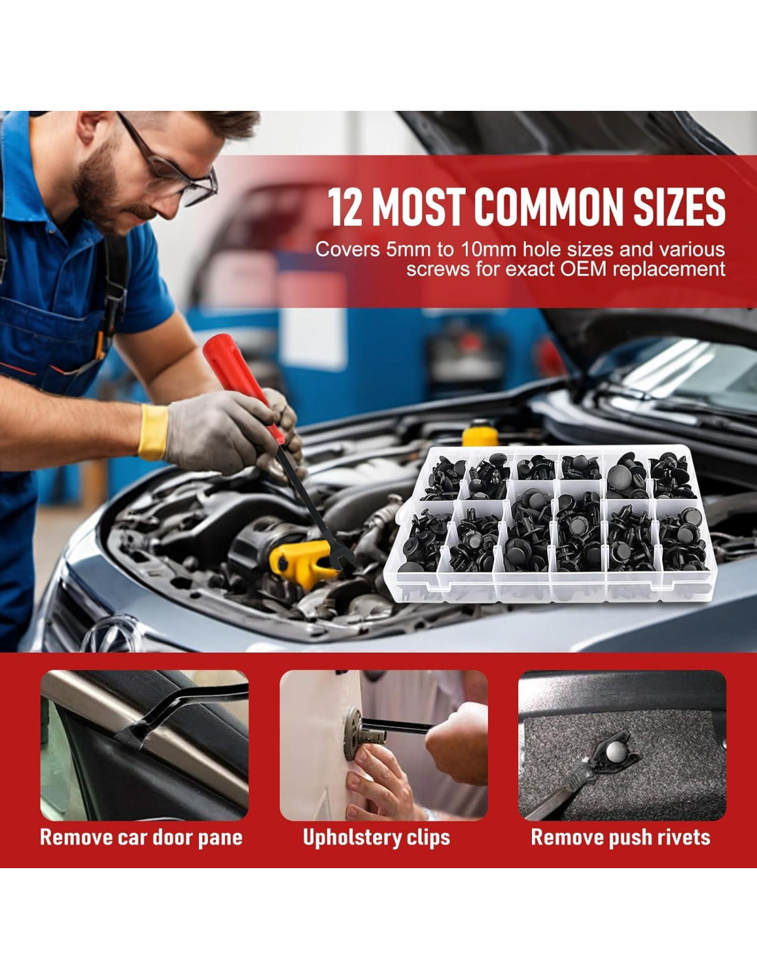 - Solución Económica y Completa: Este kit no solo ofrece un gran valor al eliminar la necesidad de múltiples viajes a la tienda de autopartes para sujetadores individuales, sino que también viene completo con 5 extractores de sujetadores. Este conjunto todo en uno facilita la extracción de sujetadores viejos y dañados, ahorrándote tiempo y dinero en el proceso. Es una solución integral para todas tus necesidades de clips y sujetadores automotrices.