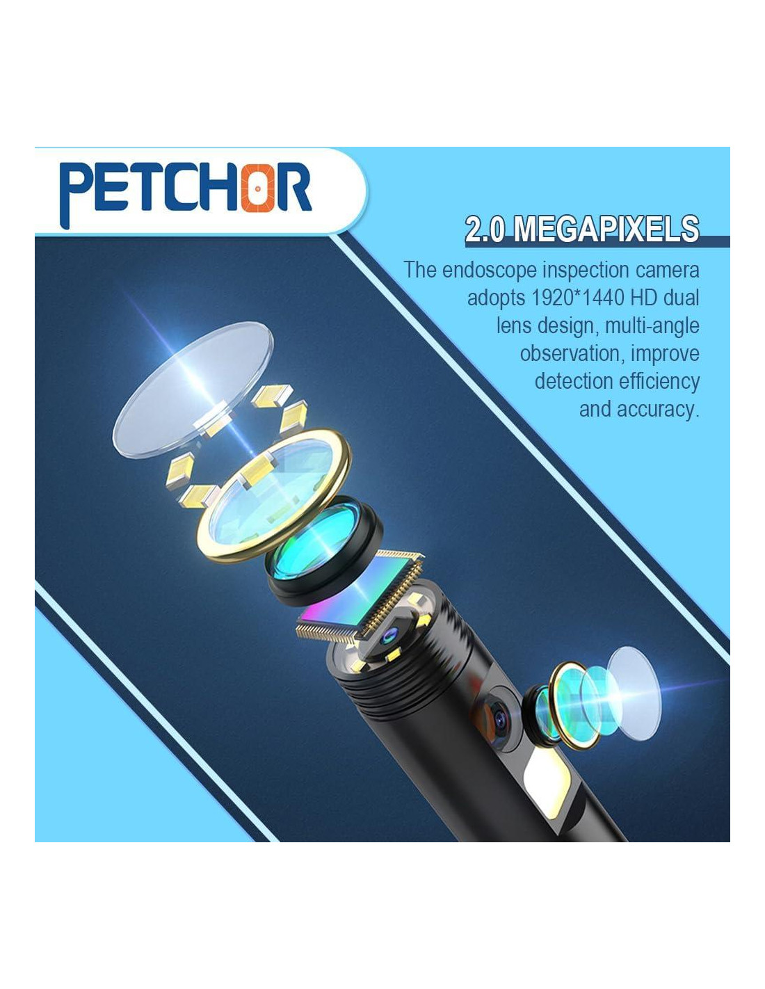 - [1920P HD DUAL LENS] : La cámara de inspección por endoscopio adopta un diseño de doble lente HD 1920*1440, observación en múltiples ángulos, mejora la eficiencia y precisión de la detección. Se puede ver tanto de frente como de lado, permitiéndote examinar objetos desde diferentes ángulos. La cámara lateral de enfoque corto proporciona una vista detallada y cercana de 90 grados para una inspección precisa.