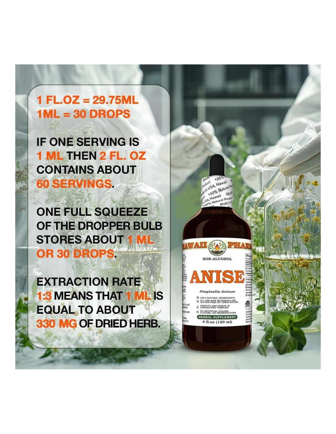 - 100% Natural, Libre de Alcohol y Puro: Confíe en el compromiso de excelencia de Hawaii Pharm. Nuestro Extracto de Anís es un producto 100% natural, libre de alcohol, sin aditivos, colorantes, saborizantes ni azúcares. Esto asegura que reciba la forma más pura de la hierba sin ingredientes no deseados. Nuestras rigurosas medidas de control de calidad garantizan los más altos estándares de pureza y efectividad, proporcionándole un producto en el que puede confiar.