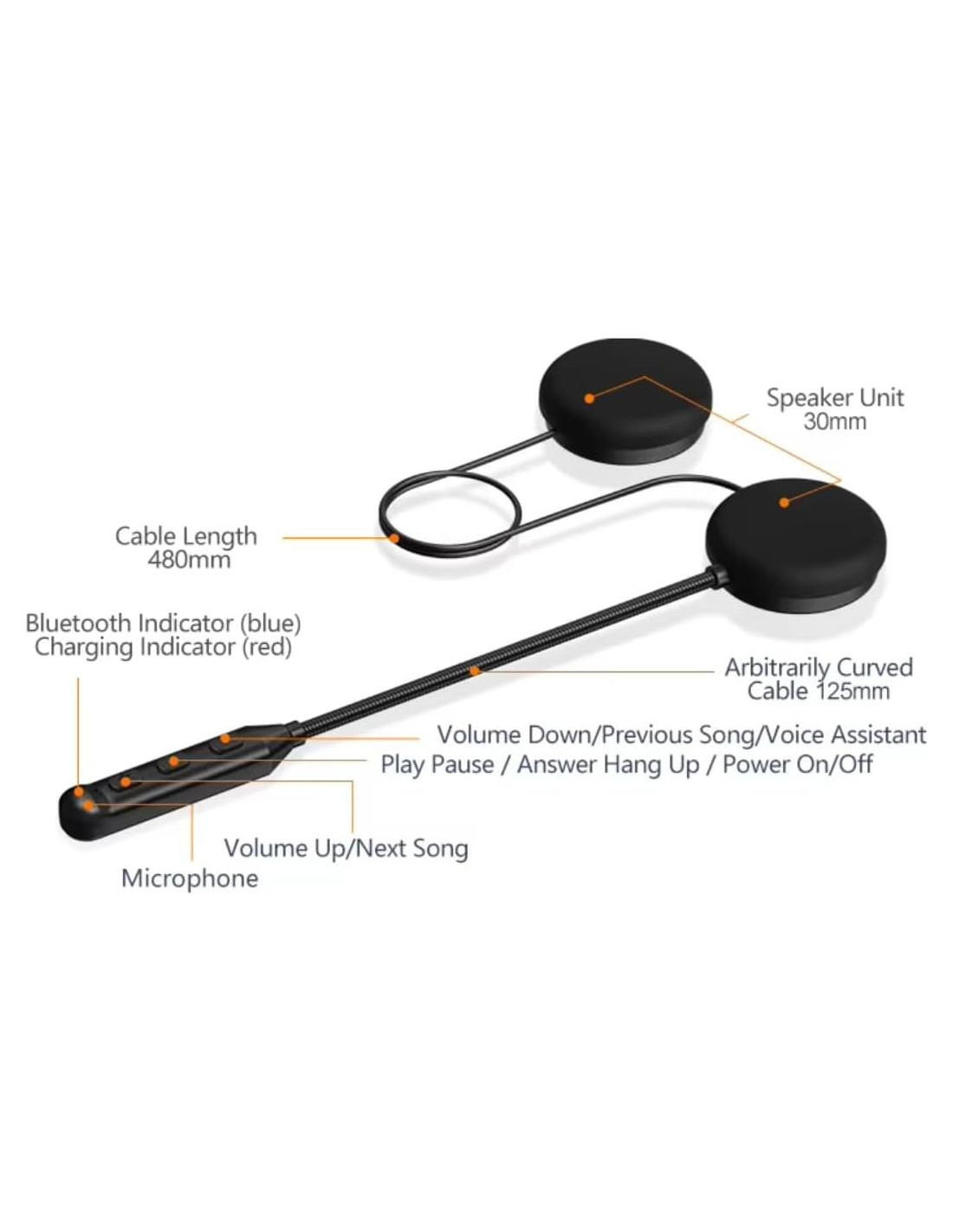 - PANEL DE CONTROL: Botones de fácil acceso en el vástago flexible permiten un rápido ajuste de volumen y control de pistas sin quitarte los guantes