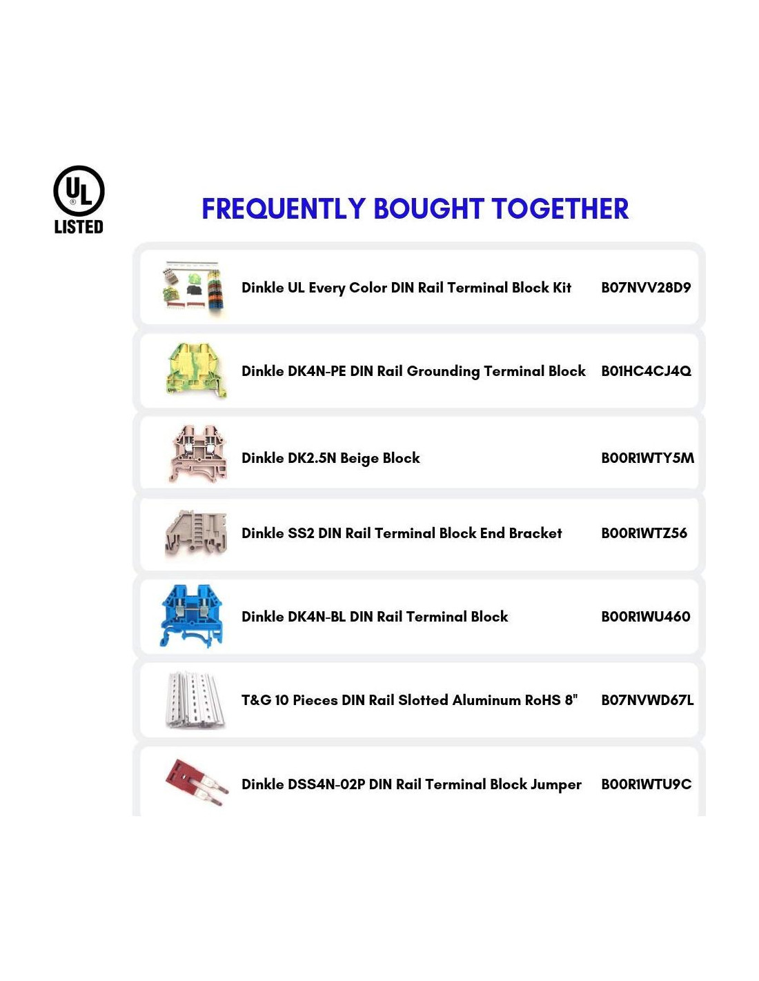 - Organice y asegure sus proyectos con este Kit de Bloques de Terminales DIN Dinkle que cuenta con un duradero riel DIN de aluminio, conectores de bloques de terminales, puentes de 10 polos y accesorios para optimización.