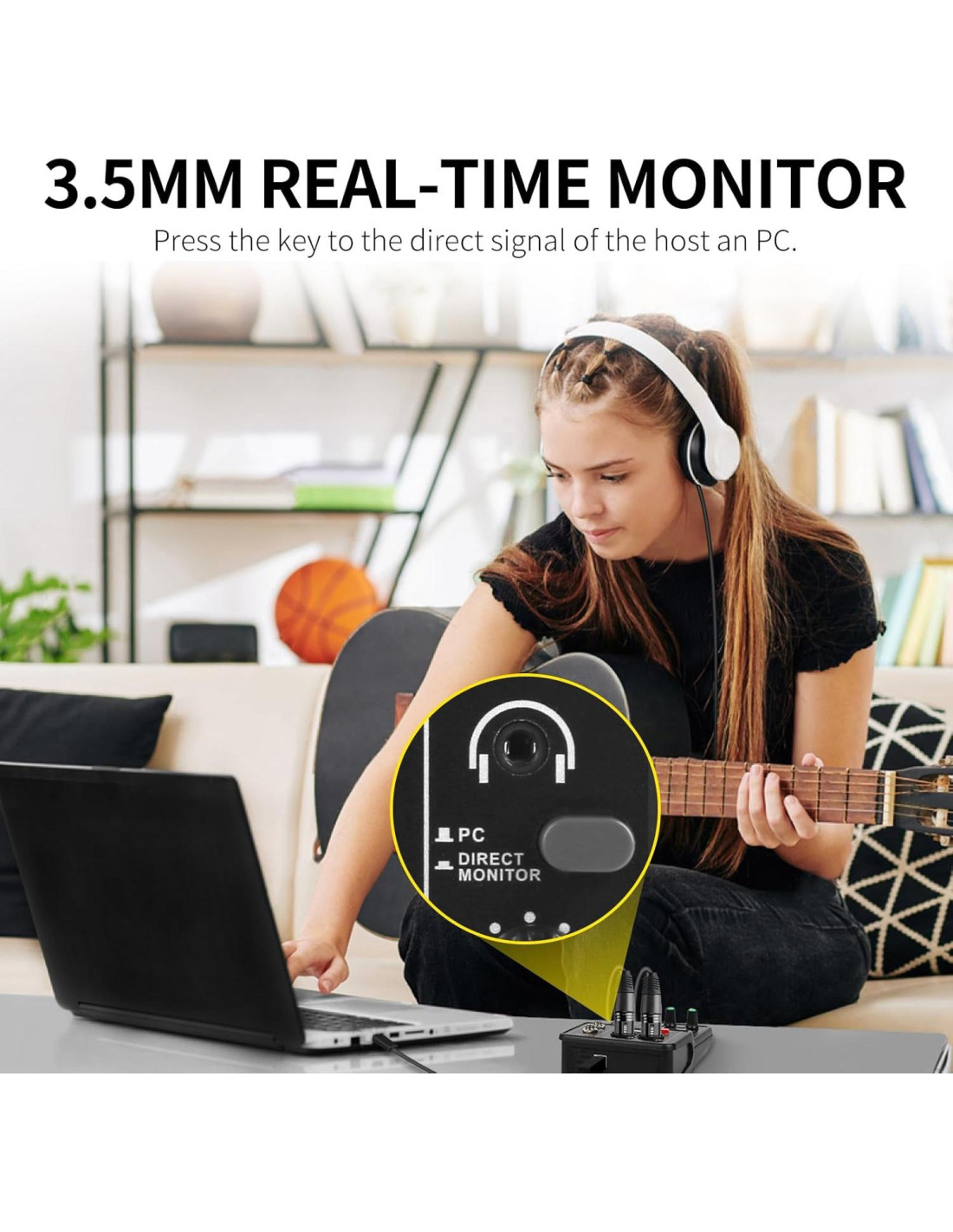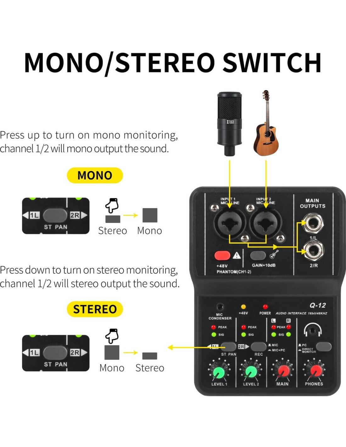 - Interfaz de Audio USB: Graba canto o guitarra y bajo en el software de grabación, permitiéndote hacer tu música favorita. Salida estéreo 1/2 conmutada a mono. Cada canal tiene su propio control de volumen independiente.
