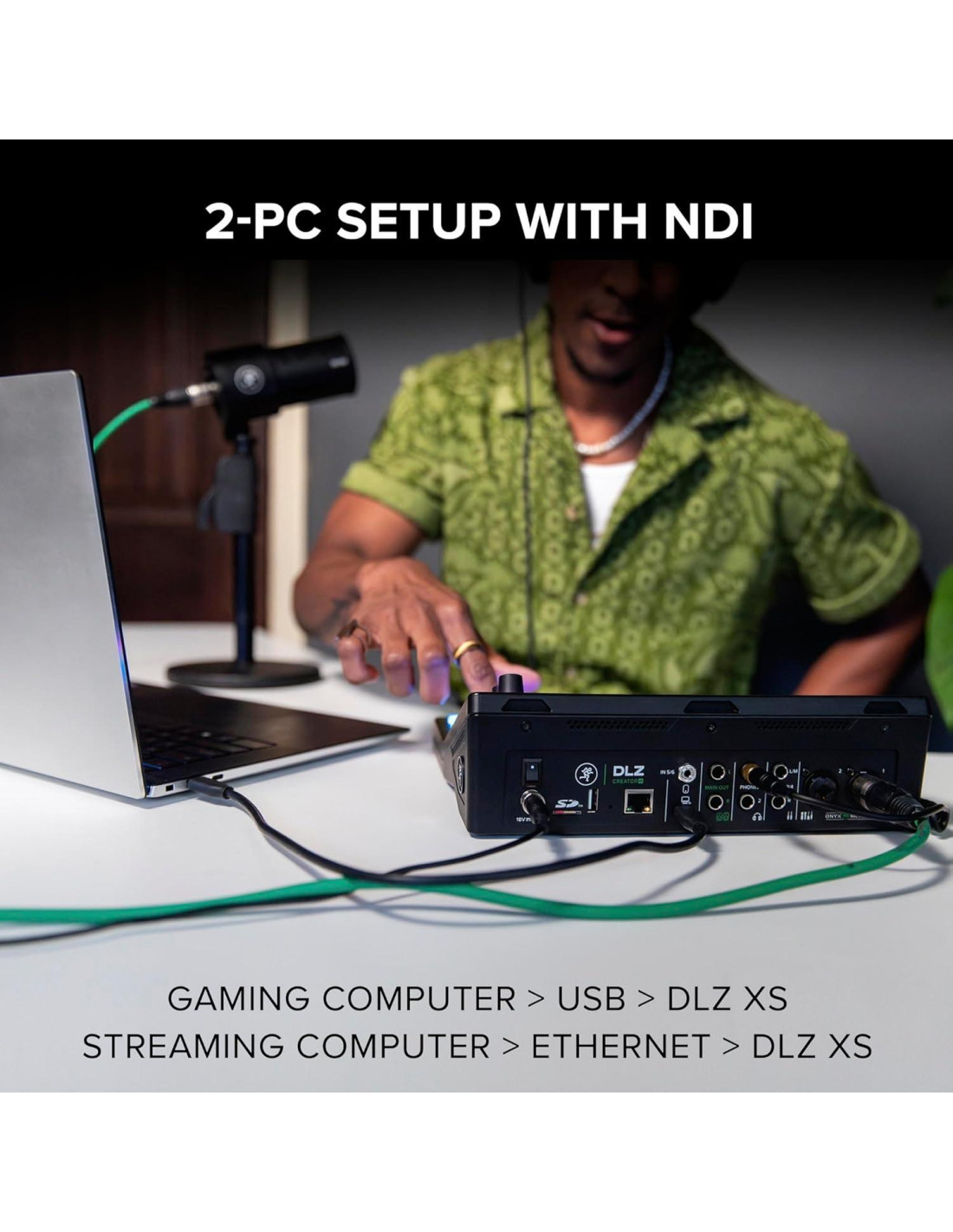 - DLZ Creator XS es más que un mezclador de podcast o interfaz de audio. Úsalo para grabar o transmitir audio multicanal a una computadora a través de USB-C o una conexión NDI, o directamente a una tarjeta SD para una configuración verdaderamente autónoma.