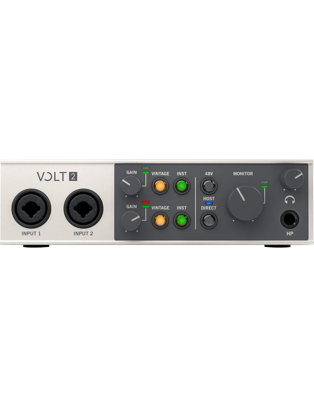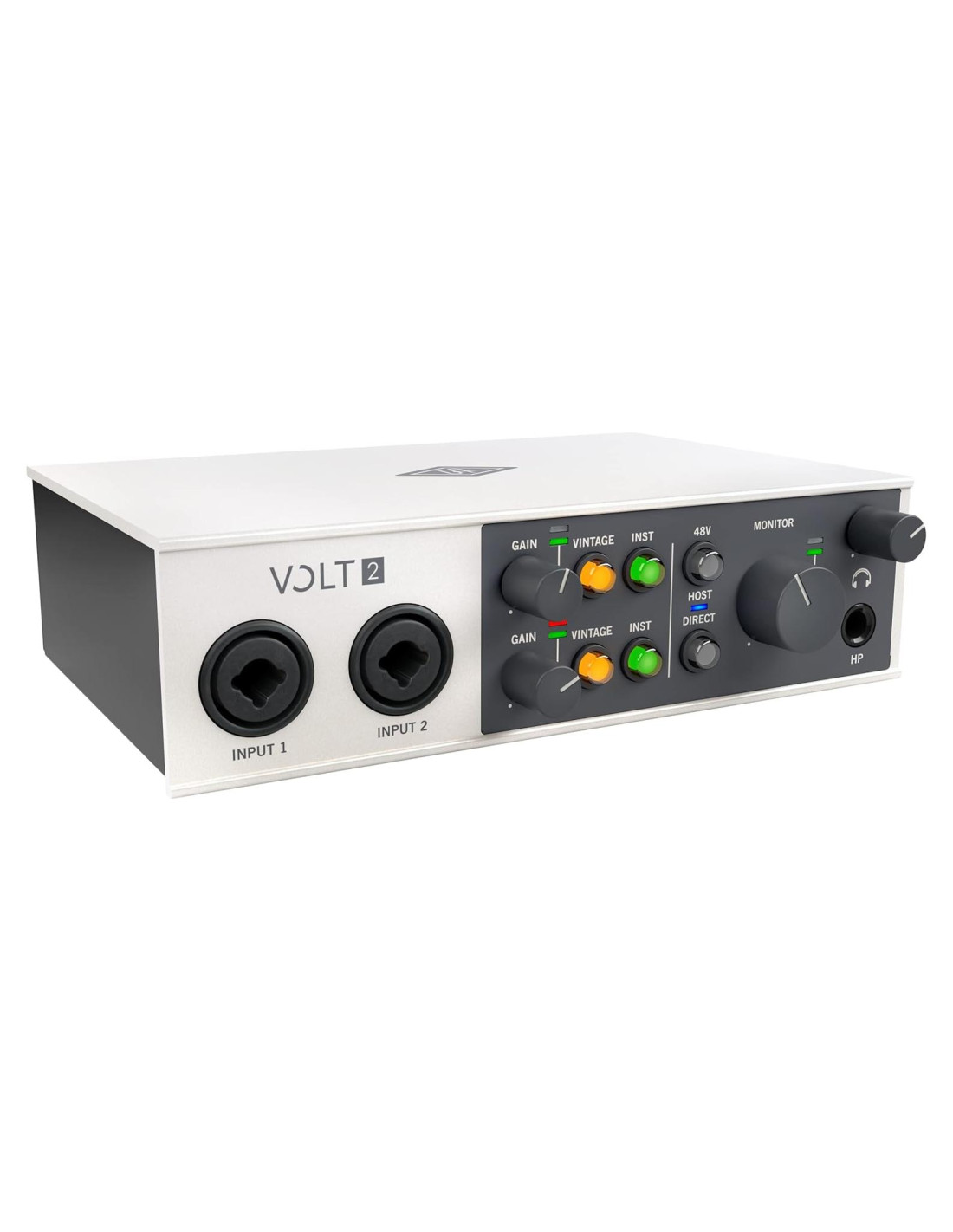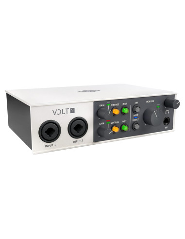 Descripción del Producto Comienza a grabar directamente de la caja con una interfaz de audio USB de alta calidad 2-in / 2-out, una DAW galardonada y un conjunto de complementos e instrumentos UAD, incluyendo compresores Teletronix LA-2A clásicos y ecualizadores Pultec, además de nuevos favoritos como PolyMAX Synth, Century Tube Channel Strip y Oxide Tape Recorder. Construido con el sonido analógico atemporal de UA, Volt 2 Interfaz de Audio USB para Grabación te brinda el sonido de tus discos favoritos. Del Fabricante Graba un Clásico, en Cualquier Lugar. Universal Audio creó Volt 2 para colaboradores - desde músicos y compositores hasta livestreamers y podcasters. Esta interfaz de grabación USB portátil 2-in/2-out para Mac, PC, iPad y iPhone te ofrece una calidad de sonido superior, un modo de preamplificador de micrófono vintage derivado del preamplificador de tubo 610 de UA, además de un conjunto de software musical líder en la industria - así que tu próxima grabación sonará clásica.