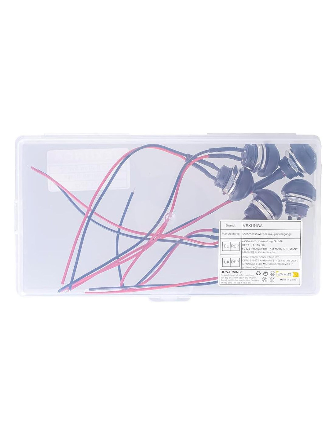 Satisface tus necesidades diarias de modificación. VEXUNGA ofrece una amplia gama de interruptores para que elijas. Ofrecemos interruptores de botón, interruptores de palanca, interruptores de balancín con y sin cables para ayudar a nuestros consumidores a resolver una variedad de problemas de interruptores. Nuestros interruptores son fáciles de operar, ya sea utilizados como interruptores de electrodomésticos, vehículos (12V) o en el campo de pasatiempos y manualidades. Interruptor de botón momentáneo impermeable de 12MM de VEXUNGA con cables. Hay cinco colores para que elijas - presiona el botón para encender, el dispositivo entra inmediatamente en estado de funcionamiento, suelta el botón para apagar, el dispositivo deja de funcionar inmediatamente. Ampliamente utilizado en operaciones industriales, como vehículos modificados, barcos, motocicletas y otros equipos de transporte; adecuado para electrodomésticos, como dispensadores de agua, cintas de correr, cafeteras, etc., así como equipos de modificación electrónica y automatización.