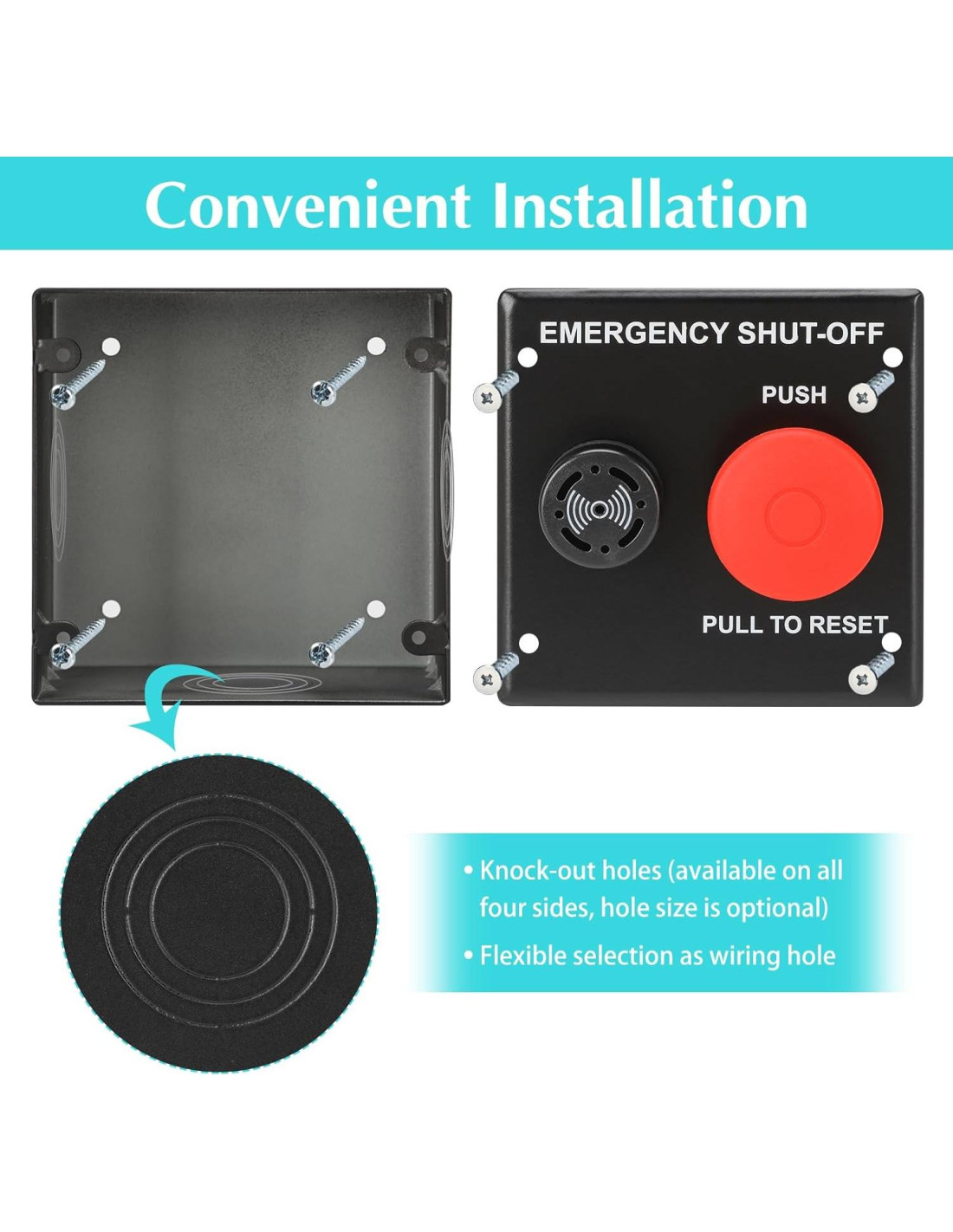 - DOBLE SEGURIDAD: El interruptor de botón de parada de emergencia está específicamente equipado con contactos de cobre gruesos para asegurar una corriente eléctrica más estable y confiable. Además, el producto ha obtenido la certificación CE, garantizando el uso seguro de todo el interruptor.