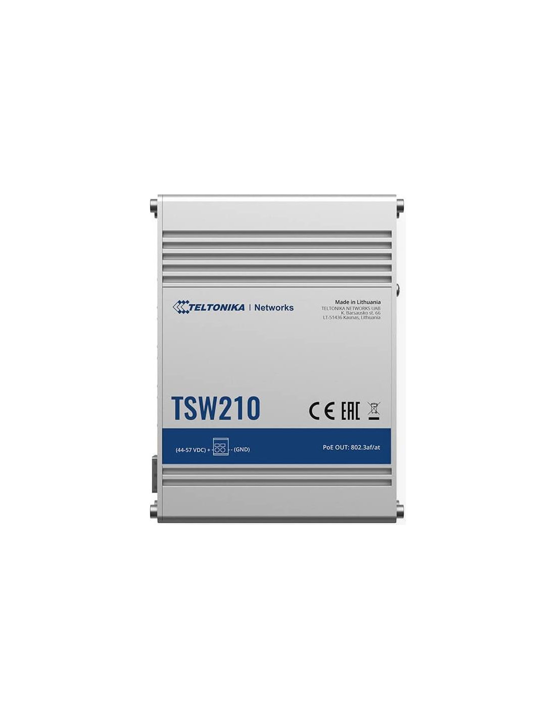 Teltonika TSW210000000 Modelo TSW210 Interruptor Industrial No Gestionado, Carcasa de Aluminio Resistente, 2 x Puertos SFP para Comunicación de Fibra Óptica de Largo Alcance, Conector de Alimentación DC Industrial de 2 Pines, 8 x Puertos Ethernet El TSW210 es un interruptor industrial no gestionado para centralizar sus recursos. Equipado con 2 puertos SFP para comunicación de fibra óptica de largo alcance y 8 puertos Ethernet con velocidades de hasta 1000 Mbps de descarga/subida Características Clave: - Amplia gama de voltajes de alimentación soportados - Conector de alimentación DC industrial de 2 pines - Carcasa de aluminio resistente para entornos industriales - 2 x puertos SFP para comunicación de fibra óptica de largo alcance - 8 x puertos Ethernet con velocidades de hasta 1000 Mbps Especificaciones: Ethernet: - 8 x puertos RJ45, 10/100/1000 Mbps Especificaciones de Rendimiento: - Ancho de banda (sin bloqueo): 20 Gbps - Búfer de paquetes: 128 KB - Tamaño de la tabla de direcciones MAC: 2K entradas - Soporte para tramas jumbo: 9216 bytes Alimentación: - Conector: conector de alimentación DC industrial de 2 pines - Rango de voltaje de entrada: 7-57 VDC - Consumo de energía (inactivo/máx. sin PoE/máx.): 1.03 W / 3.71 W Interfaces Físicas (Puertos, LEDS): - Ethernet: 8 x puertos RJ45, 10/100/1000 Mbps - Fibra: 2 x puertos SFP - LED de estado: 1 x LED de alimentación, 16 x LED de estado LAN, 2 x LED de estado SFP - Alimentación: 1 x conector de alimentación DC industrial de 2 pines - Tierra: 1 x tornillo de conexión a tierra Especificación Física: - Material de la carcasa: Carcasa de aluminio completo - Dimensiones (An x Al x Prof): 13.2 x 4.4 x 9.5 cm - Peso: 0.45 kg