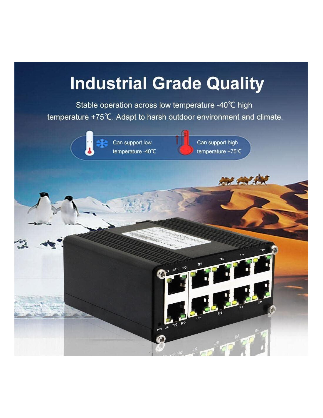 - Calidad de Grado Industrial - El Mini Switch Gigabit Endurecido utiliza componentes de grado industrial y carcasa de metal, puede funcionar en un amplio rango de temperatura de -40C a 75C (-40F a 167F). Puedes usarlo en entornos exteriores difíciles.