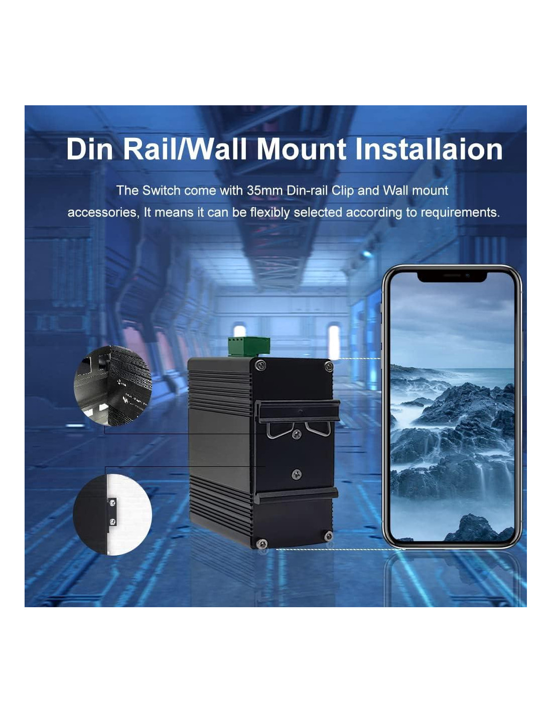 - Montaje en Riel Din - El Switch Ethernet de Montaje en Riel Din viene con Clip de Riel Din y soporta Montaje en Riel Din de 35mm.