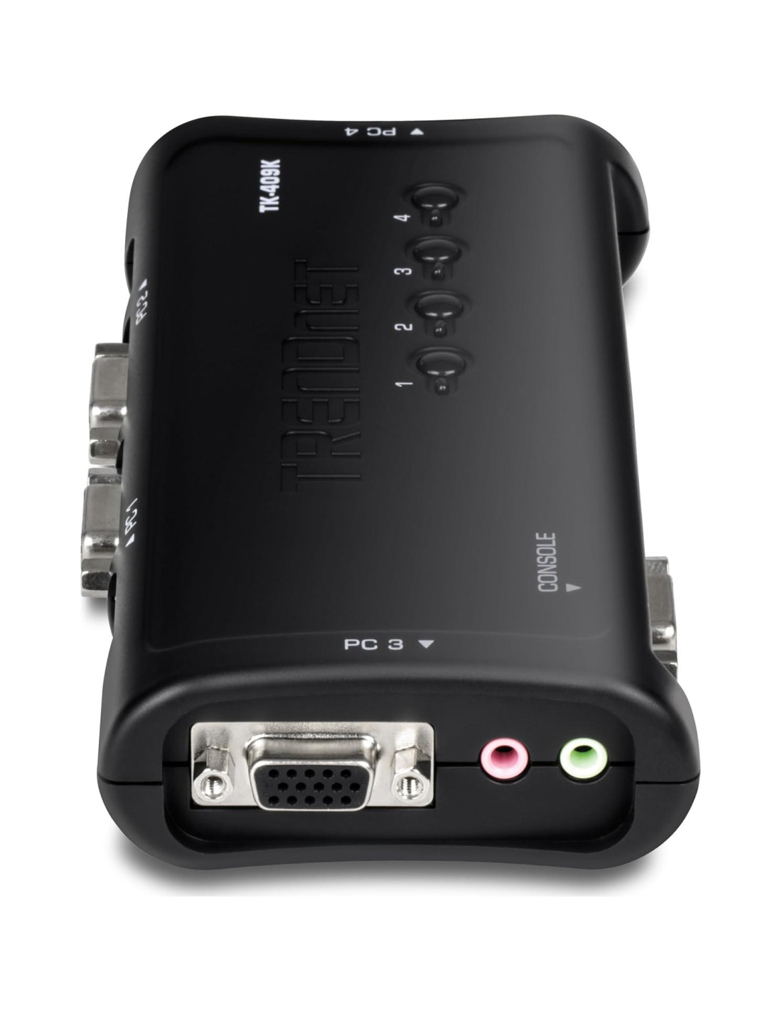 El Interruptor KVM USB de 4 Puertos con Audio de TRENDnet, modelo TK-409K, te permite controlar cuatro computadoras con un solo conjunto de controles de consola. Experimenta resoluciones de hasta 2048 x 1536, sin necesidad de instalación de controladores. Se incluyen conjuntos separados de cables KVM con el interruptor KVM, para que los usuarios puedan comenzar a controlar cuatro estaciones de trabajo al instante. Los cables KVM también proporcionan energía al interruptor KVM, eliminando la necesidad de un adaptador de corriente. Las operaciones de Tecla de Acceso Rápido proporcionan acceso inmediato a funciones, como el cambio de computadora y el escaneo automático. Con su Conexión en Caliente y Retroalimentación Audible, el Interruptor KVM USB de 4 Puertos es la elección perfecta para gestionar múltiples PCs.