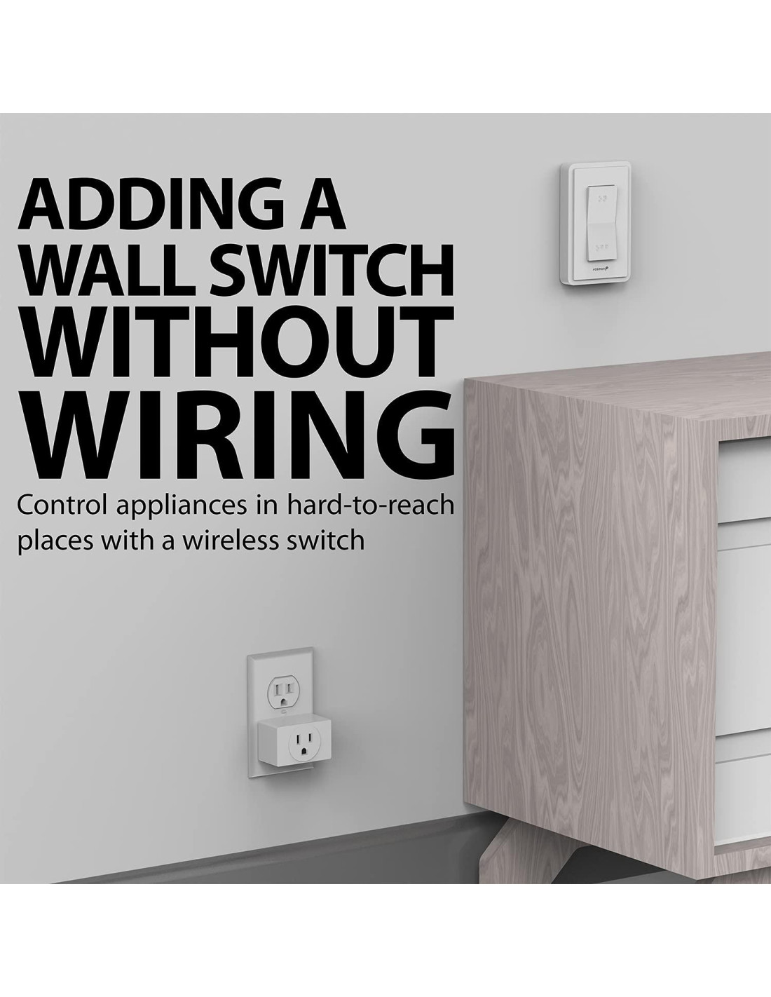 - [INTERRUPTOR DE LUZ INALÁMBRICO CÓMODO] El interruptor de enchufe inalámbrico WavePoint de Fosmon te permite agregar un interruptor de pared a tu luz, ventilador o triturador de basura (máx 0.37 HP) sin cableado eléctrico ni contratar a un electricista. Simplemente conectando el receptor a un enchufe y montando el interruptor en la pared o usándolo como un control remoto de mano, puedes encender y apagar el enchufe con un simple clic. Es perfecto para iluminación, electrónica o pequeños electrodomésticos.