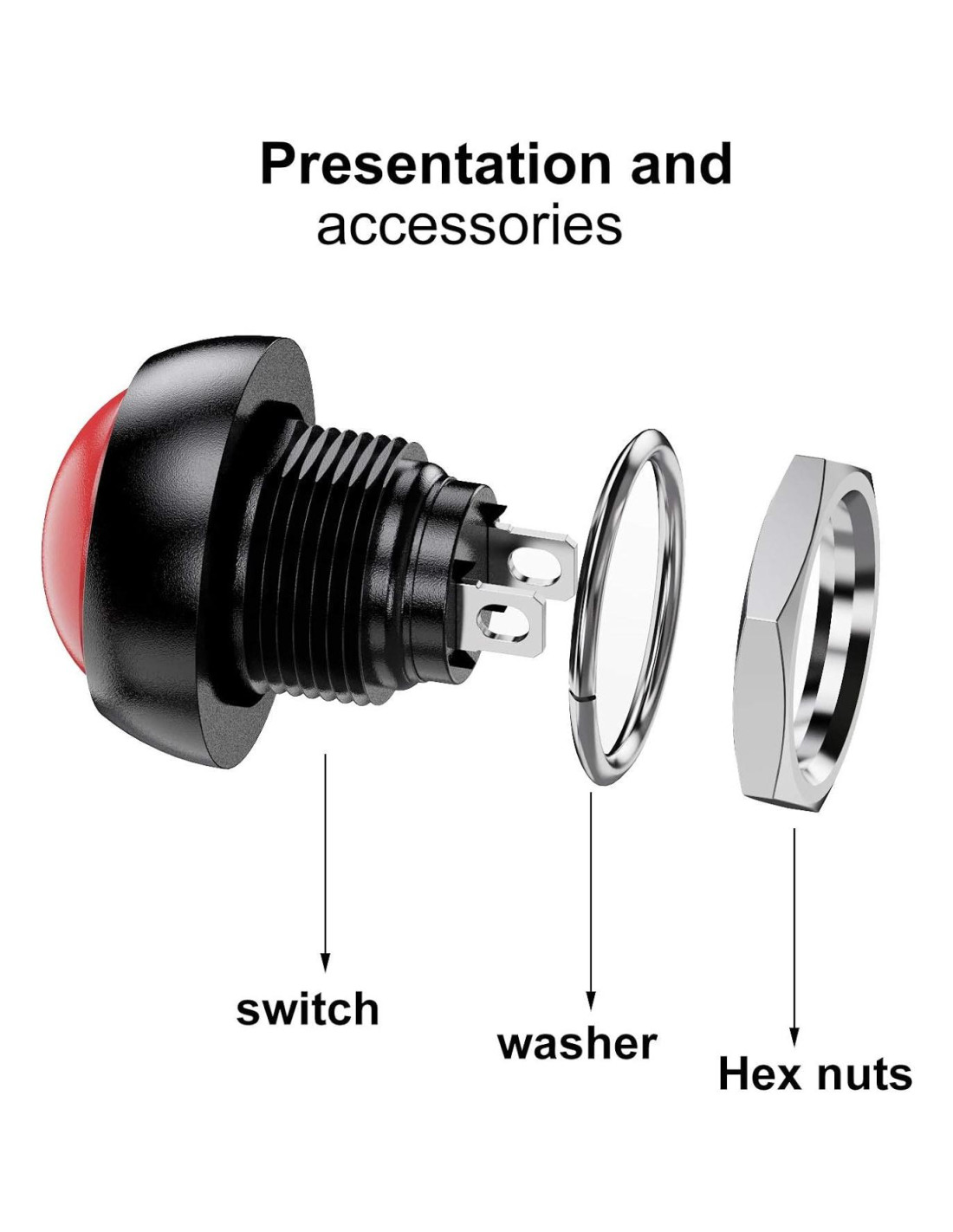 - Contenido del Paquete: 14 pcs x Interruptores de Botón (7 Rojos, 7 Negros).