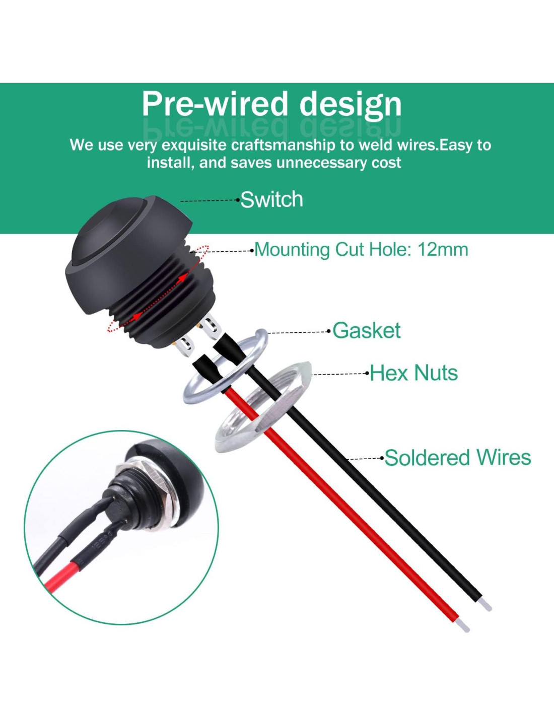 - Tipo Momentáneo: Presionar y Mantener - ENCENDIDO, Soltar - APAGADO; Diseño pre-cableado: Fácil de instalar y ahorra costos innecesarios